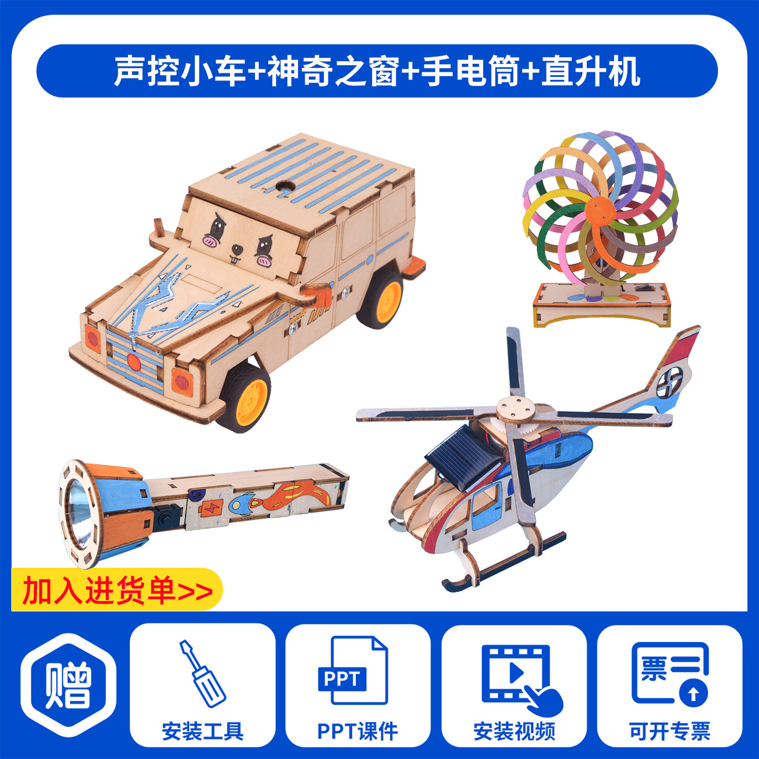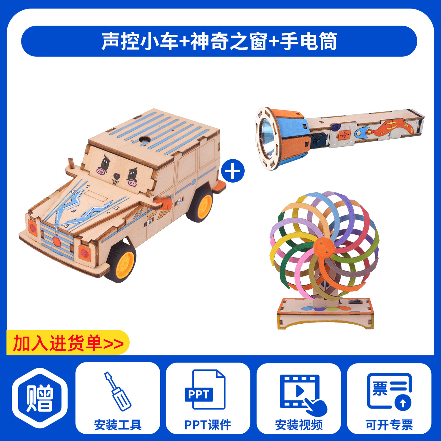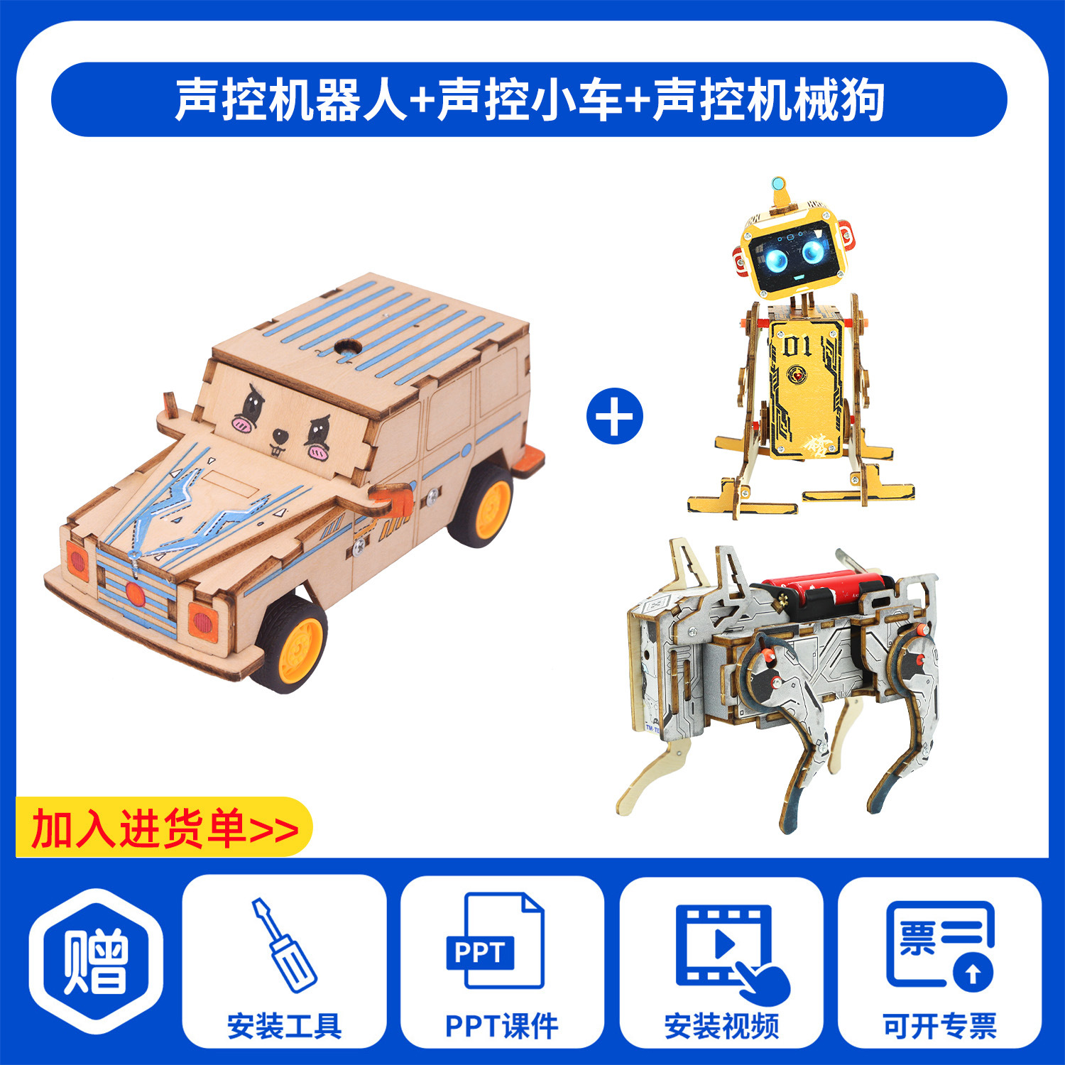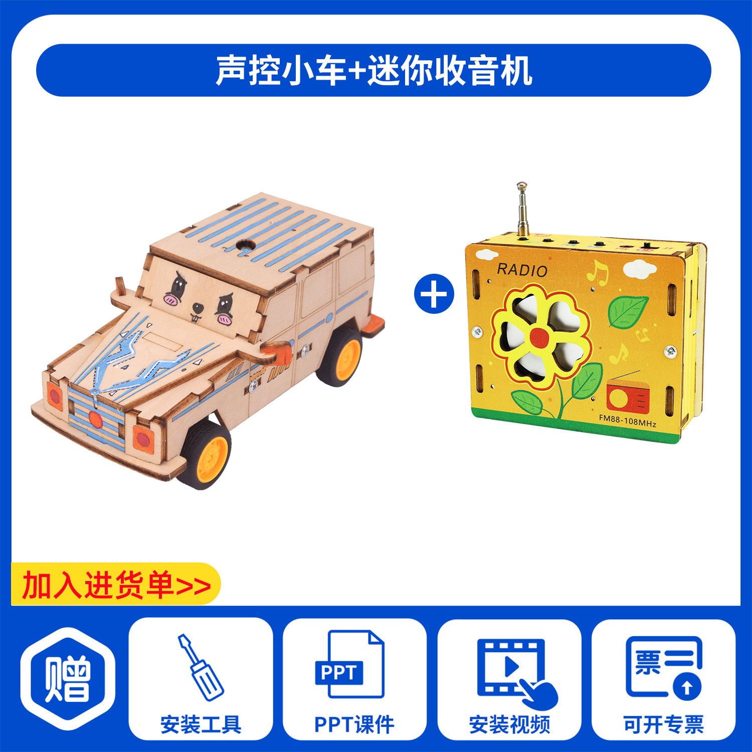 과학 기술 작은 생산 발명 diy 음성 제어 전기 자동차 손으로 조립 초등학교 학생 장난감 과학 실험 교육 보조스토어 가기