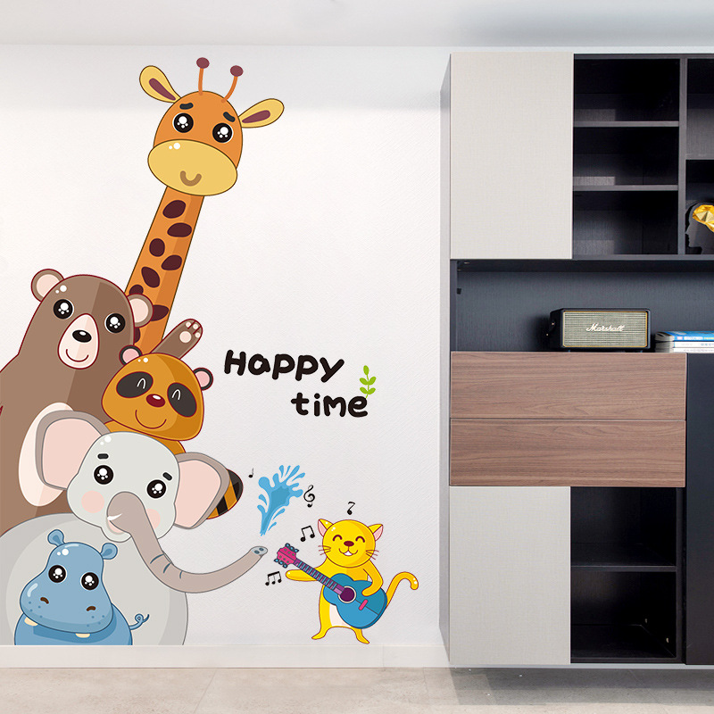 (알몸) 만화 어린이 방 문 스티커 벽 스티커 장식 작은 동물 패턴 스티커 침실 따뜻한 레이아웃스토어 가기