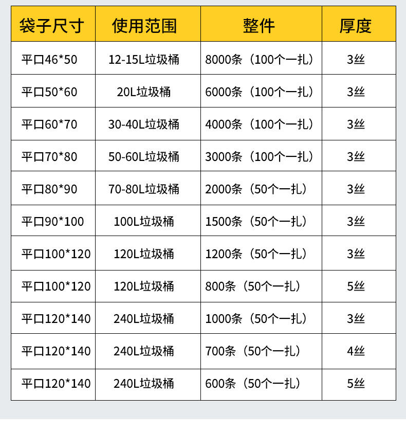 • 80 리터 평평한 입 타입 80*90 * 두껍게 * PE * 우수 * 황색