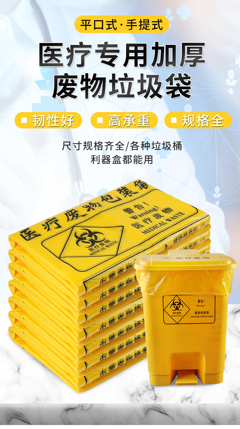 의료 쓰레기 봉투 두꺼운 병원 봉투 일회용 평면 입 휴대용 클리닉 쓰레기 봉투 제조 업체 도매