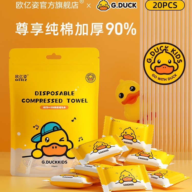 압축 수건 작은 노란색 오리 피부 친화적 인 여행 크기 일회용 얼굴 수건 도매 확대 및 두꺼운 휴대용 사각형 수건스토어 가기