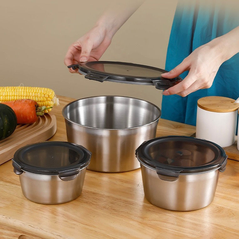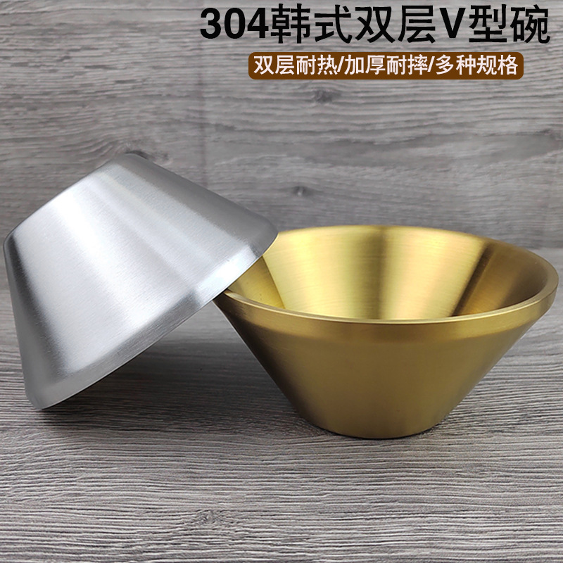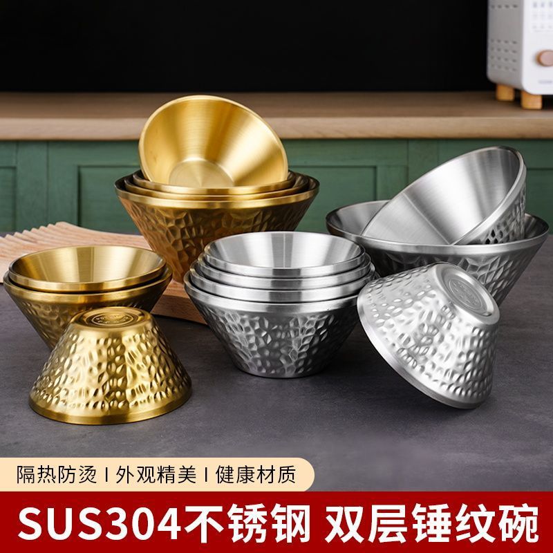 304 스테인레스 스틸 그릇 한국식 대나무 모자 그릇 상업용 이중층 냉면 그릇 가정용 디저트 빙수라면 연속 얼음 그릇