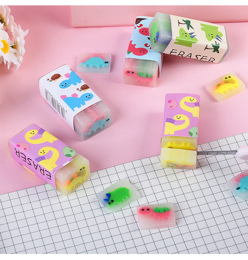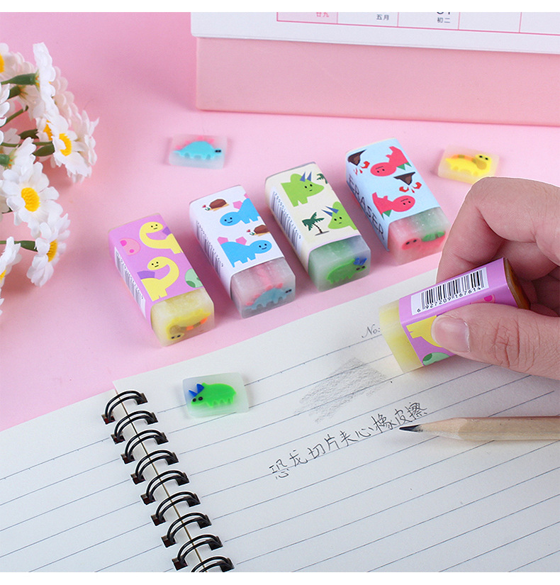 만화 창조적 인 공룡 고무 한국식 슬라이스 학생 깨끗한 샌드위치 젤리 모양 고무 작은 문구스토어 가기