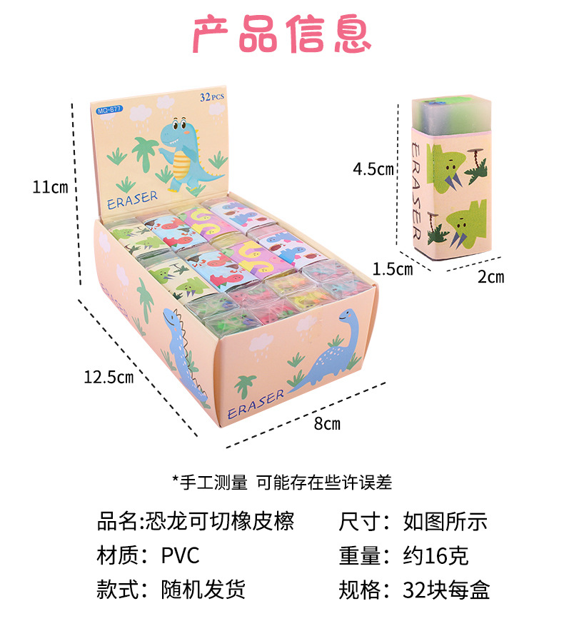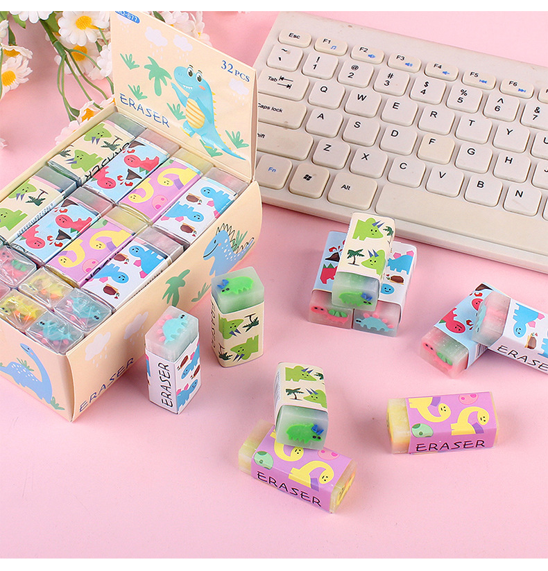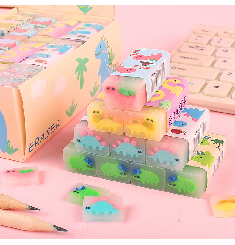 만화 창조적 인 공룡 고무 한국식 슬라이스 학생 깨끗한 샌드위치 젤리 모양 고무 작은 문구