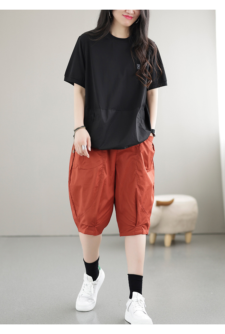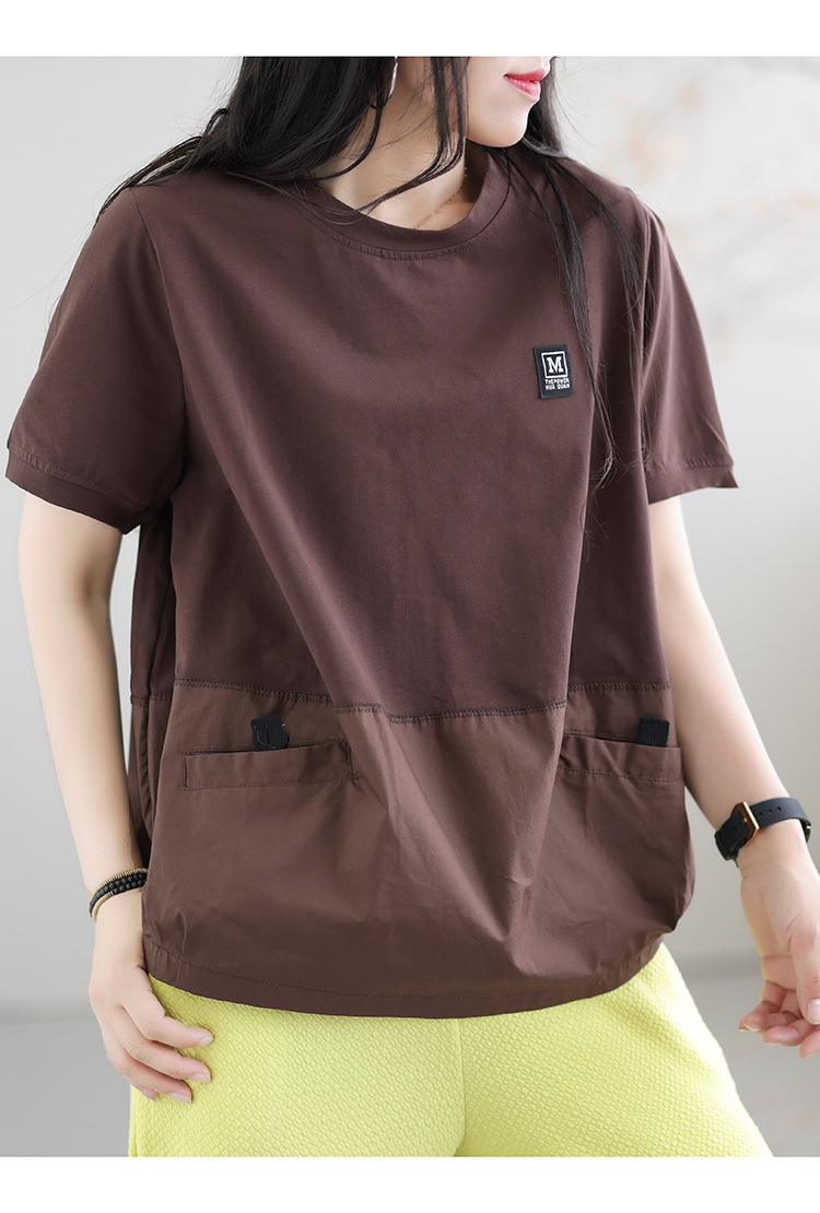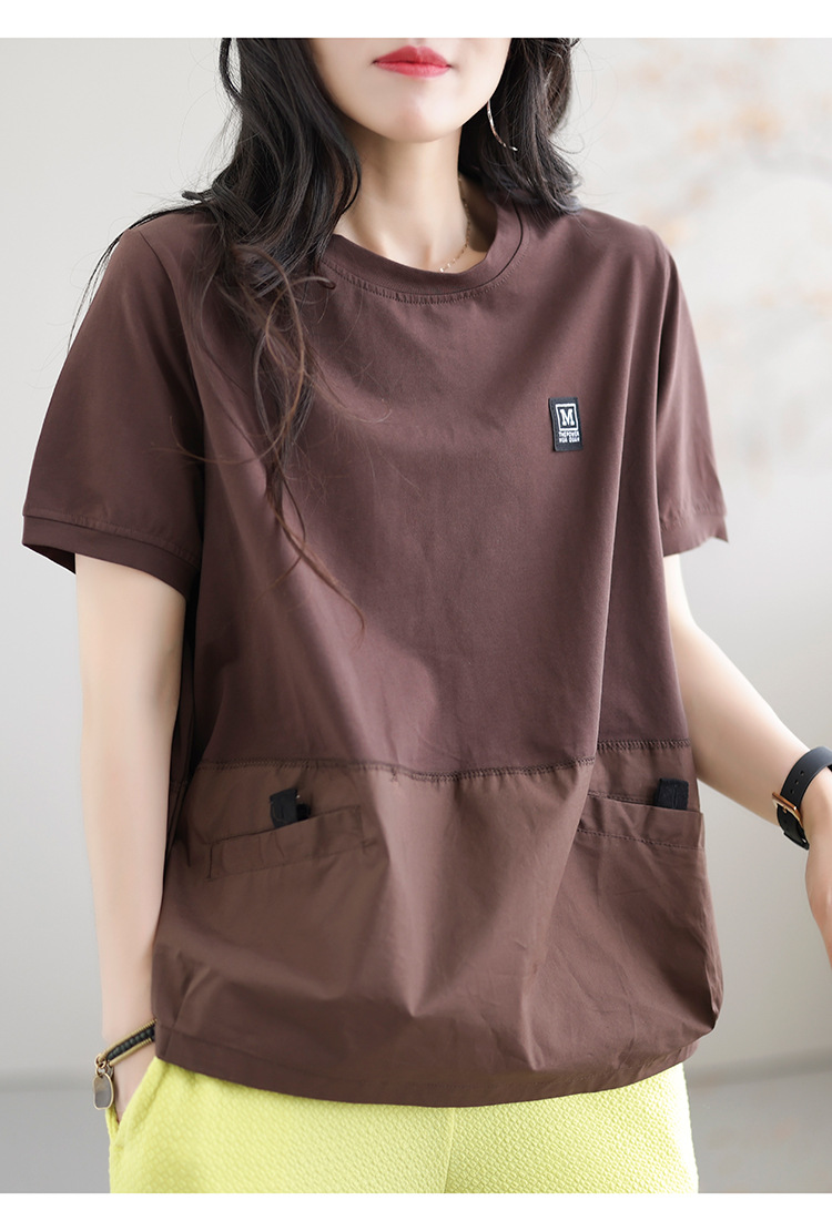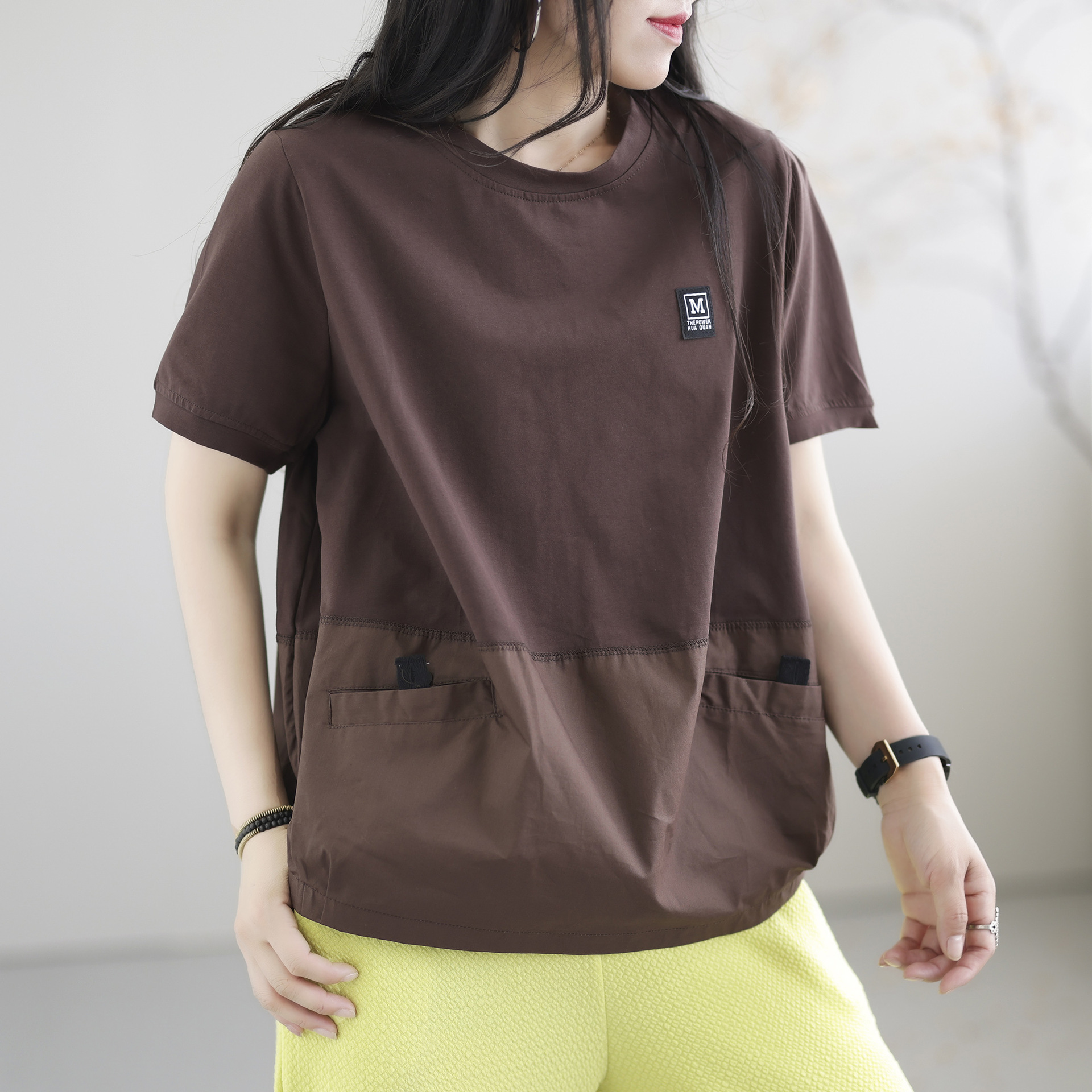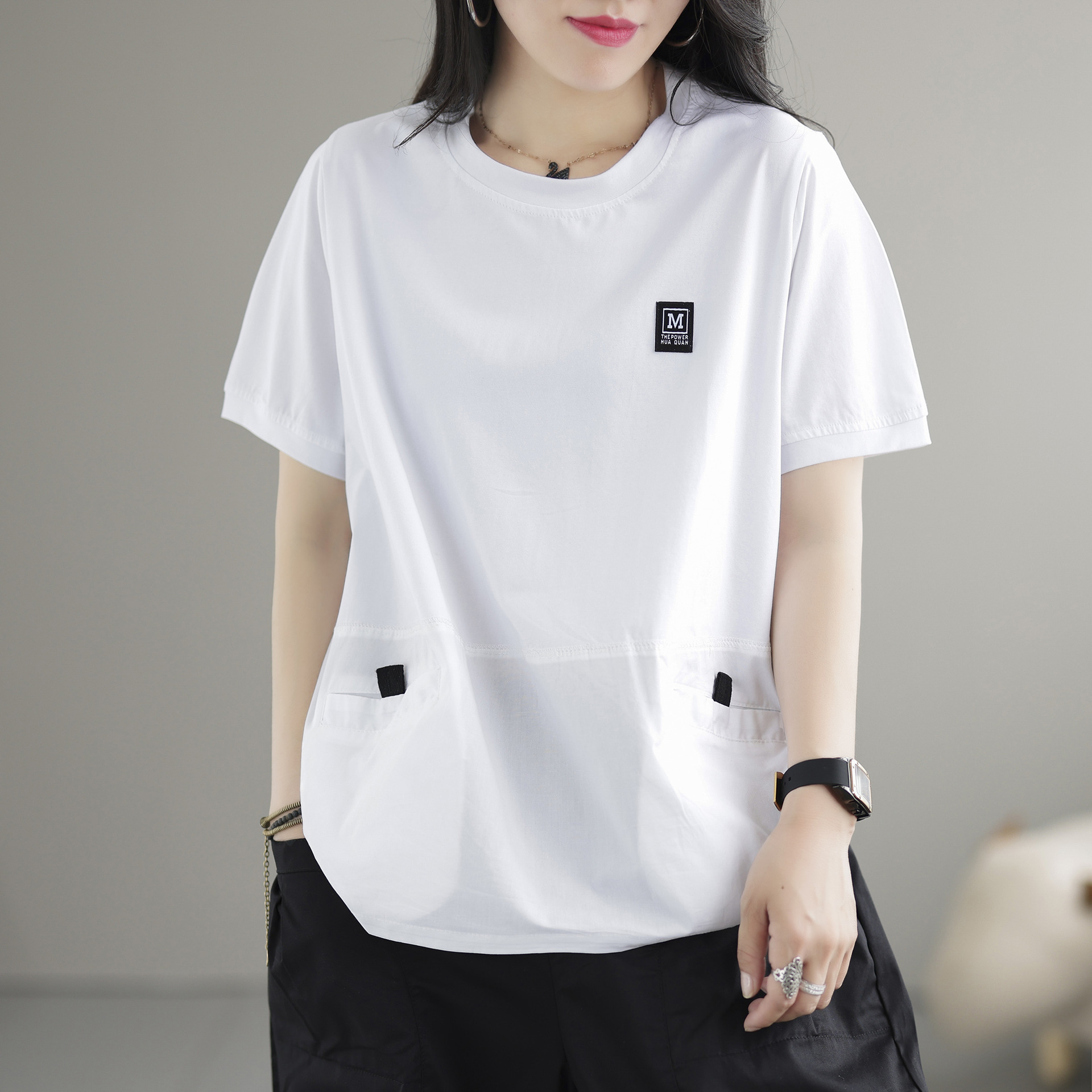 코튼 반팔 티셔츠 여름 새로운 스타일 간단한 패션 올 매치 솔리드 컬러 루즈 스티칭 캐주얼 탑 여성 810