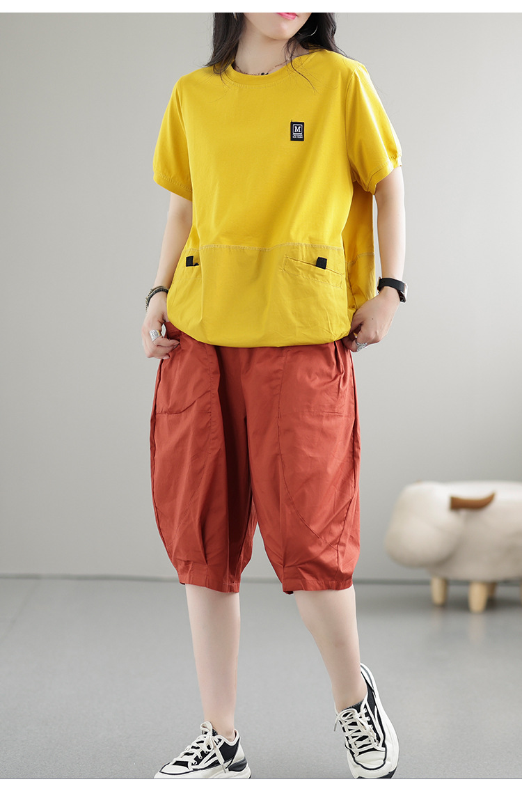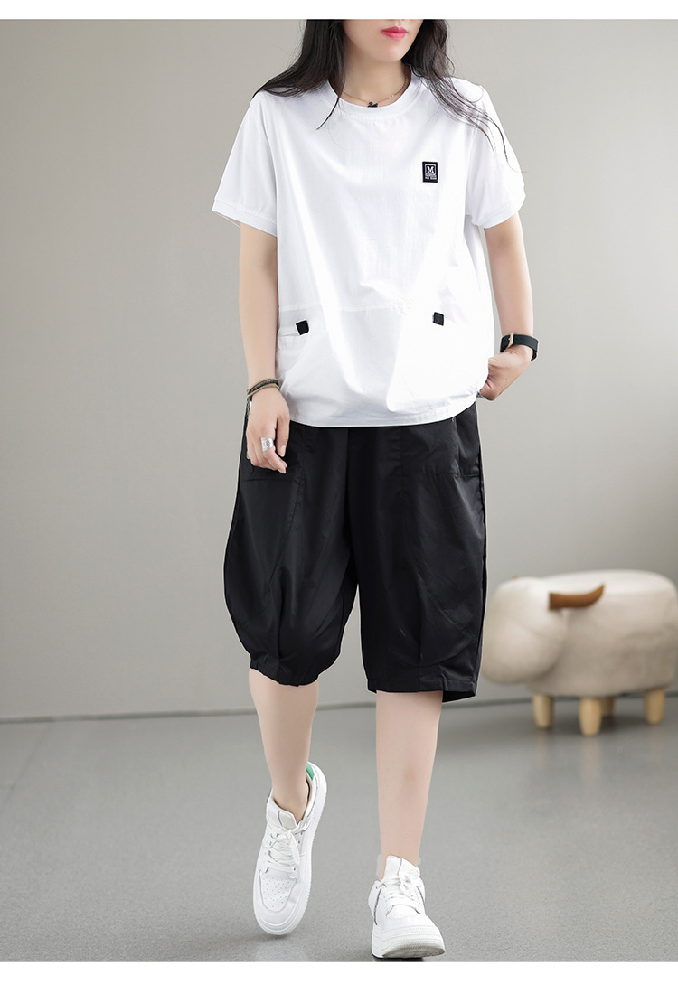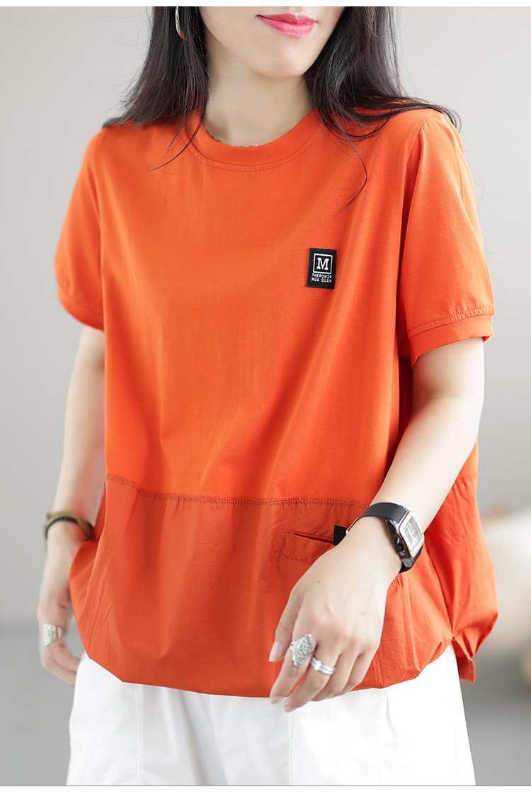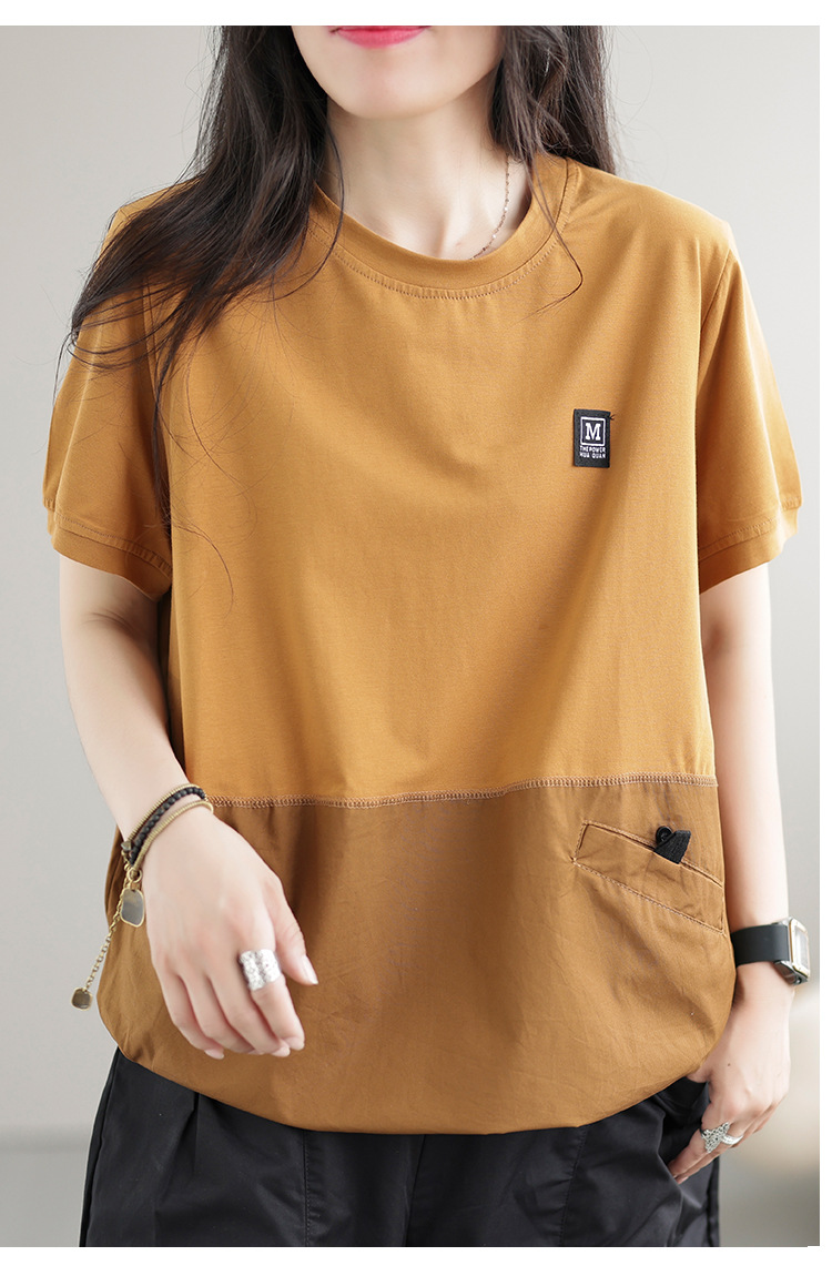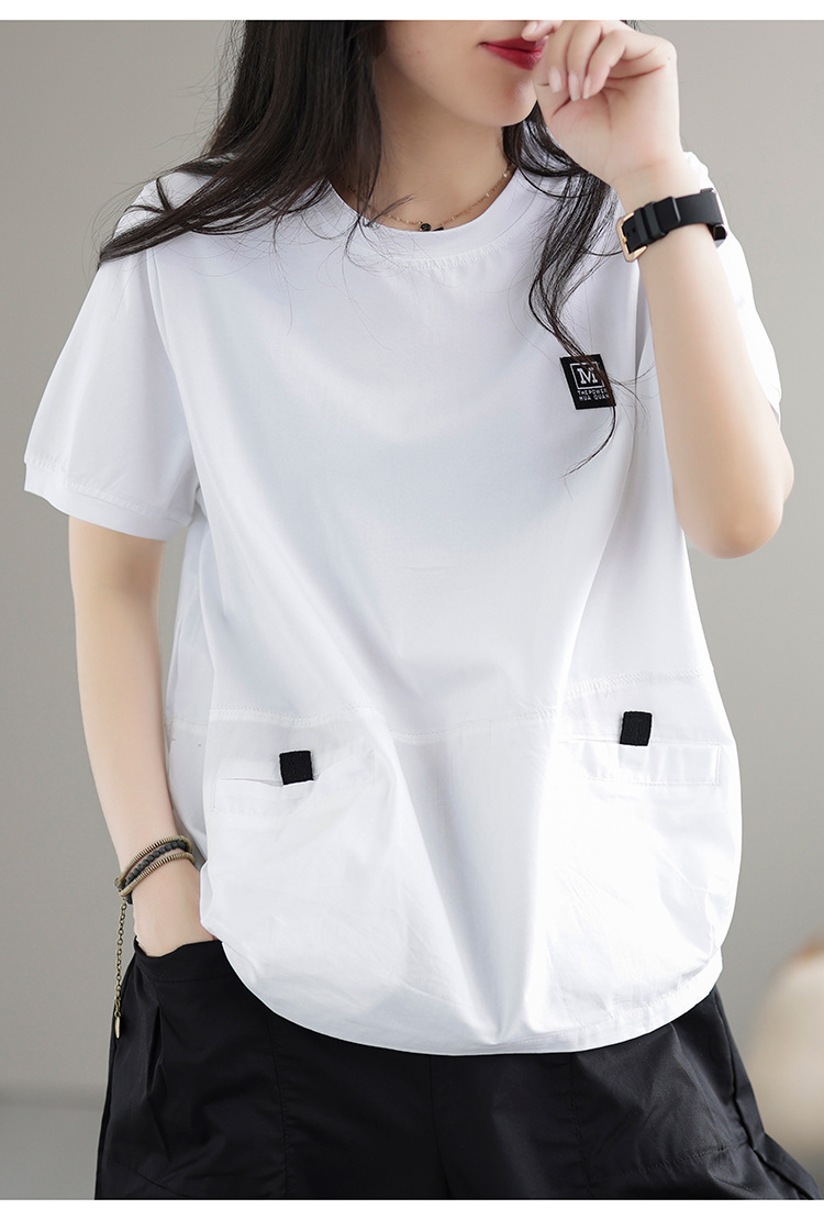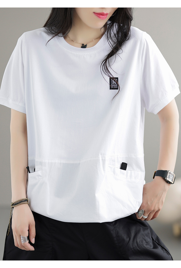 코튼 반팔 티셔츠 여름 새로운 스타일 간단한 패션 올 매치 솔리드 컬러 루즈 스티칭 캐주얼 탑 여성 810스토어 가기