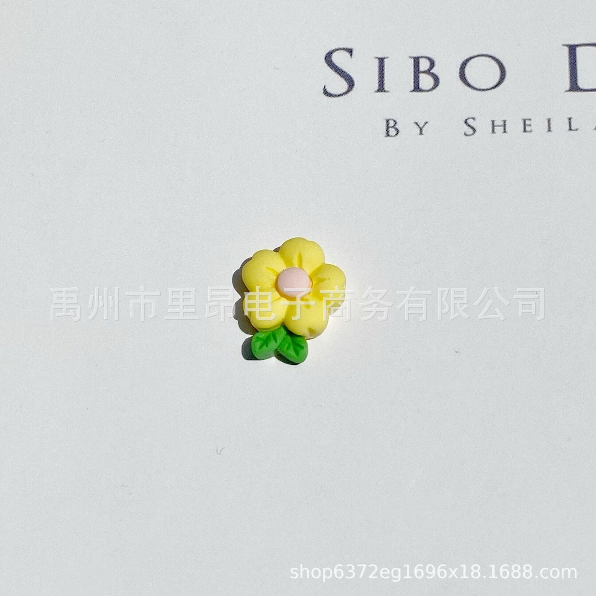 귀여운 미니 녹색 잎 작은 꽃 수지 해바라기 diy 크림 접착제 휴대 전화 쉘 소재 헤어 클립 액세서리 장식스토어 가기