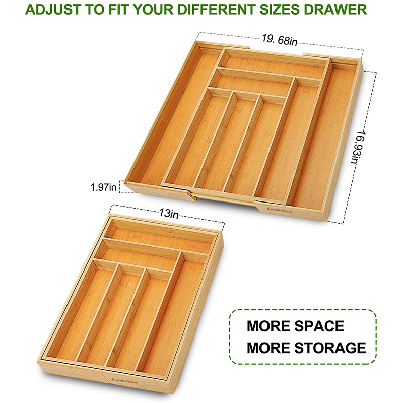 대나무 개폐식 칼 저장 상자 가정용 주방 서랍 식기 데스크탑 문구 화장품 분류 조직 상자