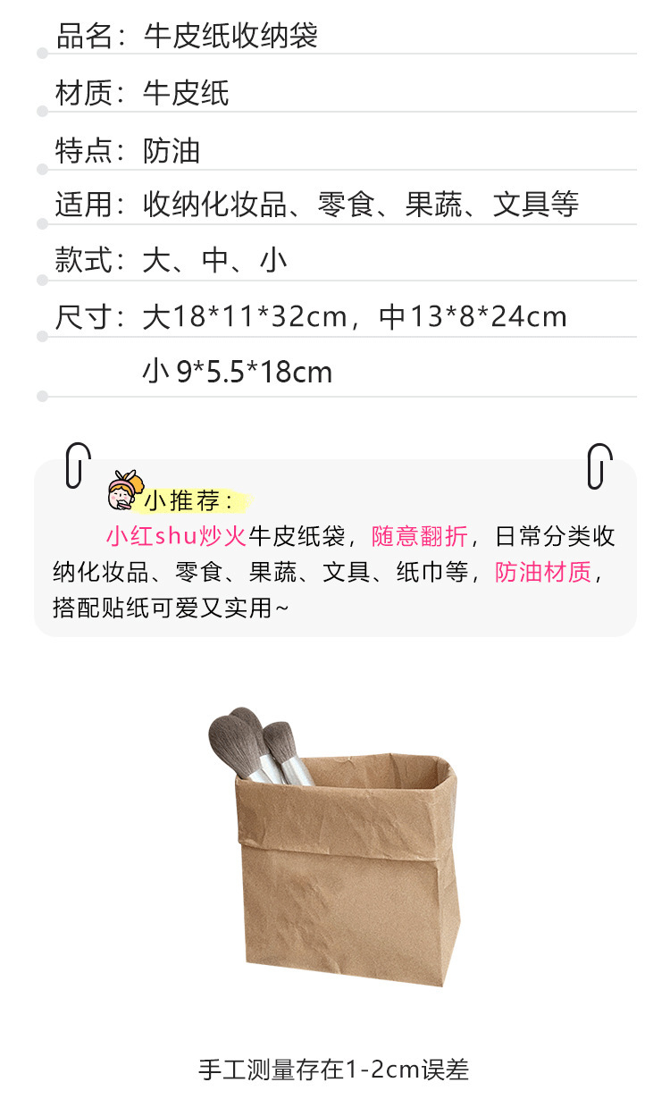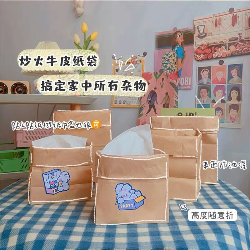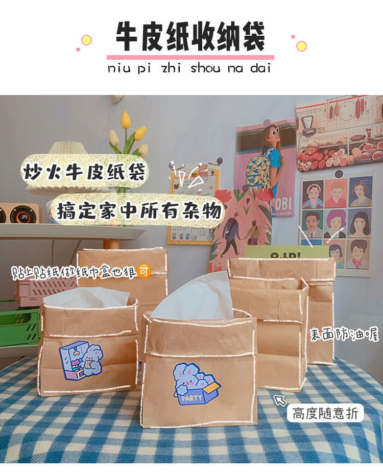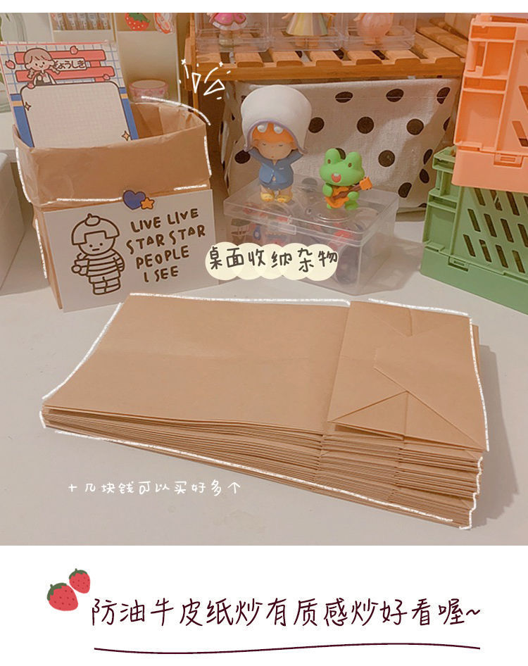 스타일 식품 학년 포장 가방 레트로 빨 기름 방지 크래프트 종이 보관 가방 화장품 데스크탑 보관
