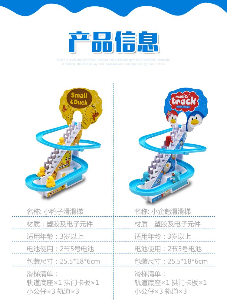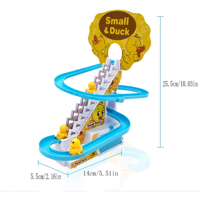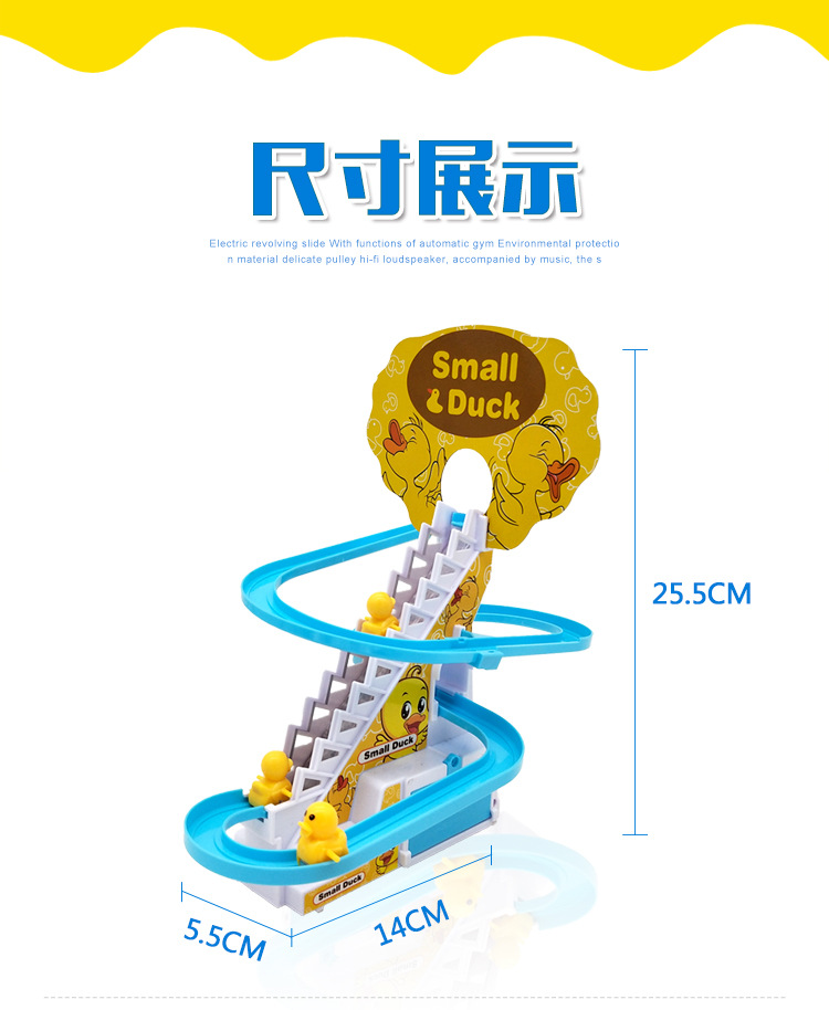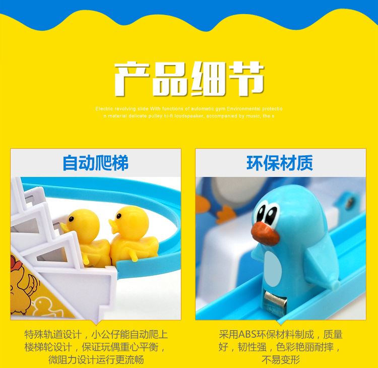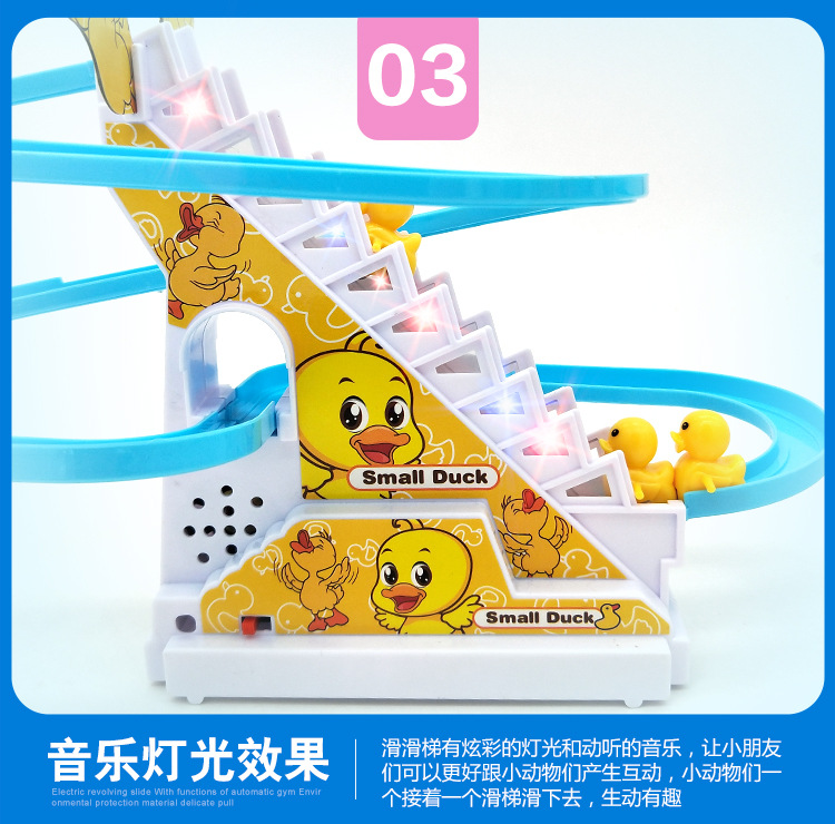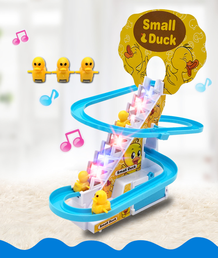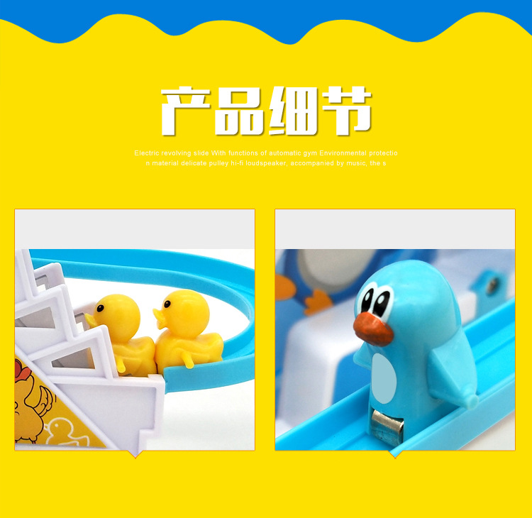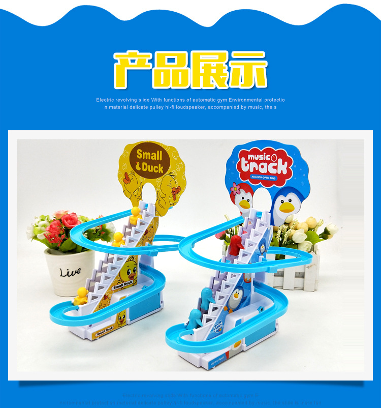 Douyin의 동일한 스타일의 작은 오리 계단 오르기 트랙 자동차 전기 트랙 슬라이드 어린이 교육 조립 장난감 인터넷 연예인스토어 가기