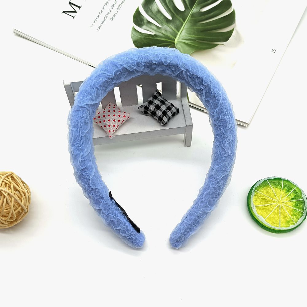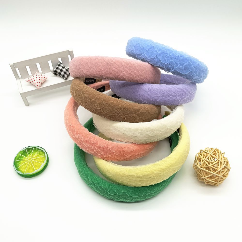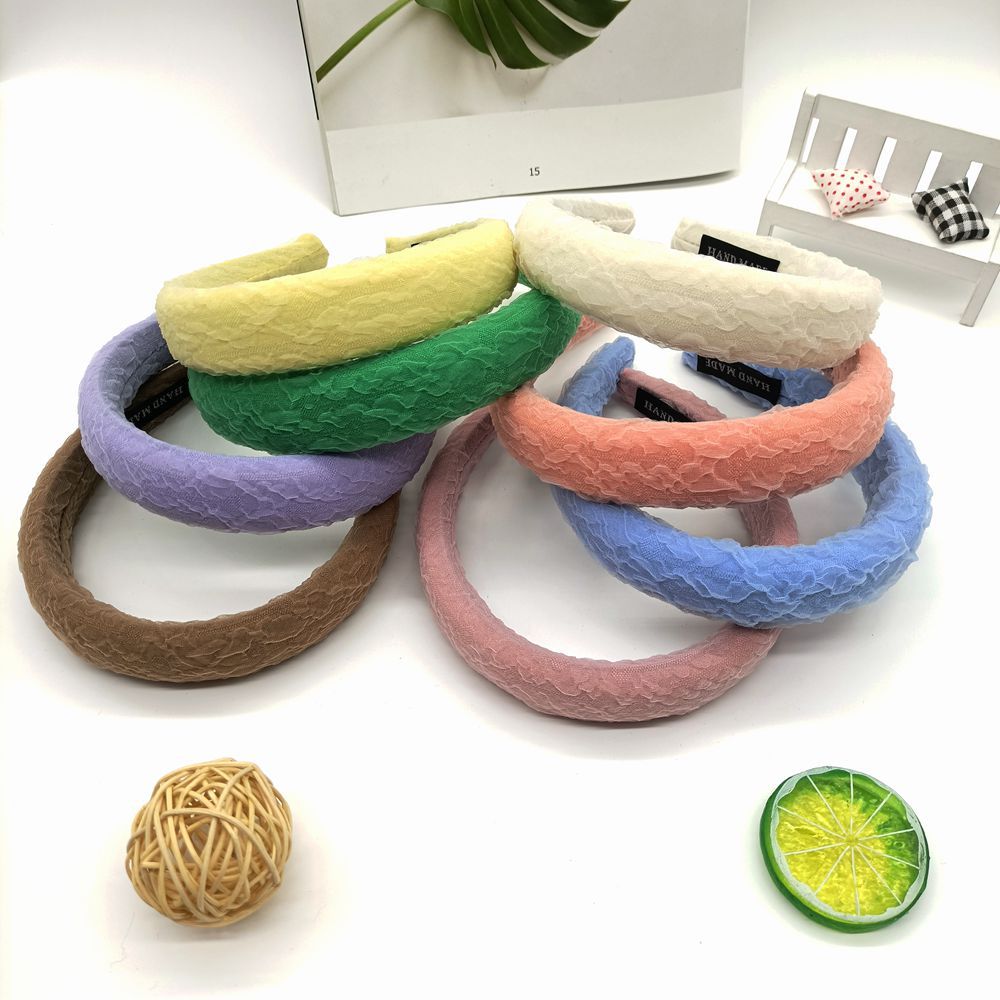 한국식 캔디 컬러 하이 두개골 탑 헤어 밴드 사이버 연예인 기질 나이 감소 폭이 넓은 두꺼운 스폰지 헤드 밴드 백 레이스 프릴 헤드스토어 가기