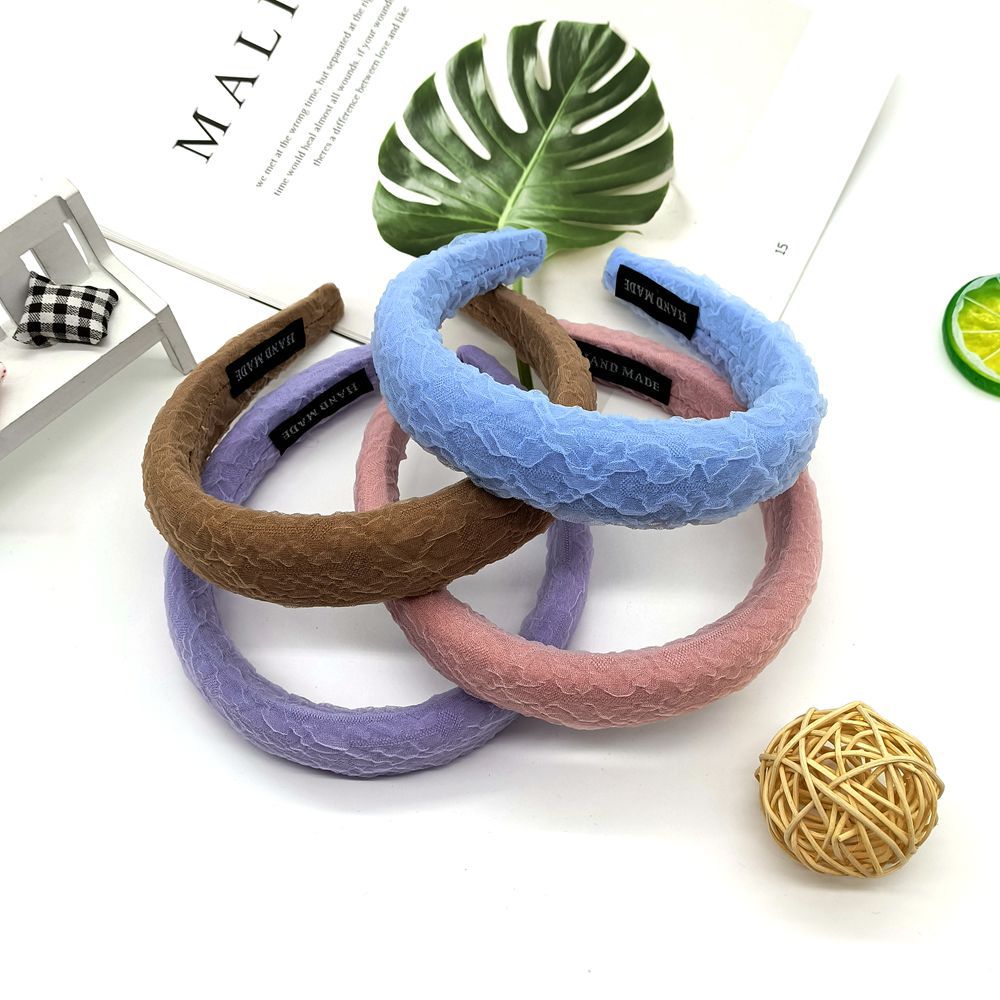 한국식 캔디 컬러 하이 두개골 탑 헤어 밴드 사이버 연예인 기질 나이 감소 폭이 넓은 두꺼운 스폰지 헤드 밴드 백 레이스 프릴 헤드