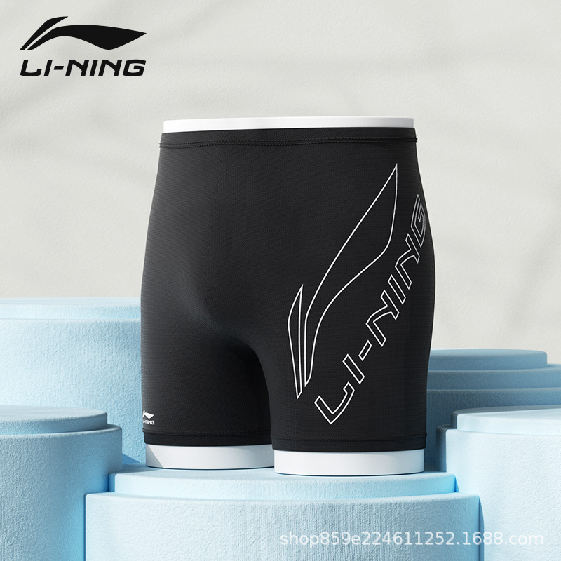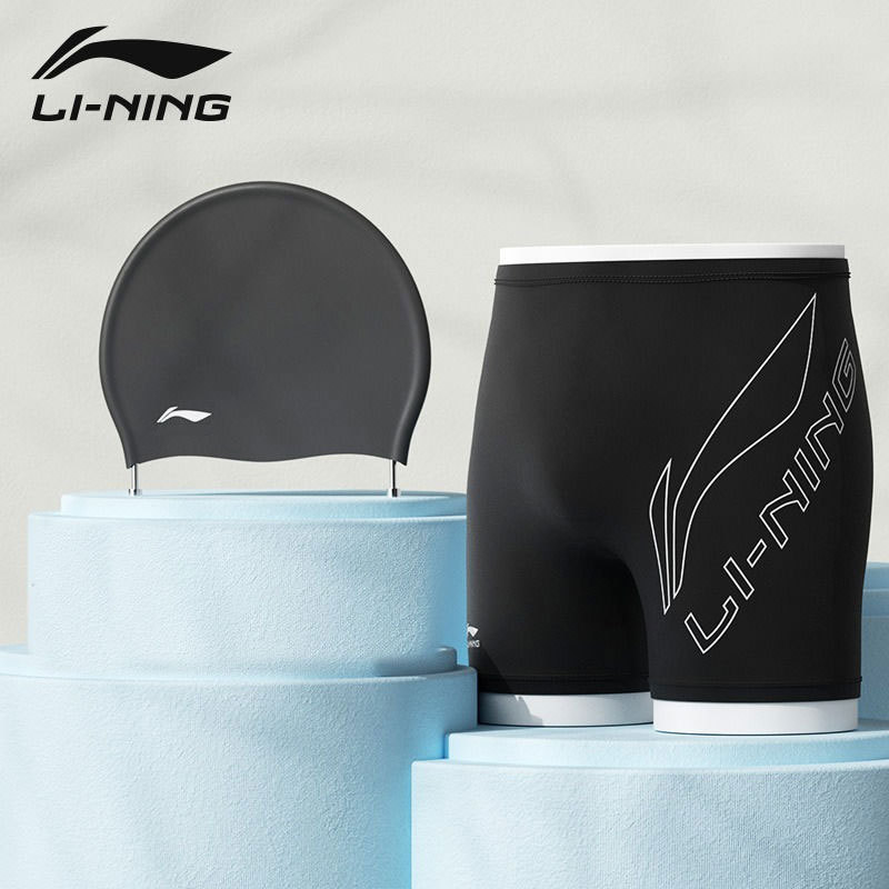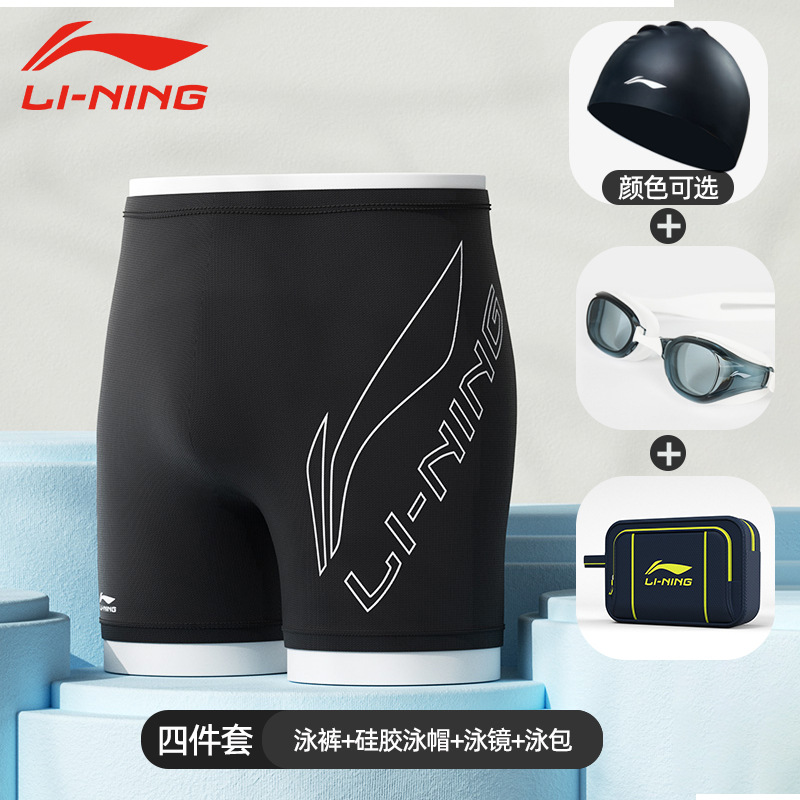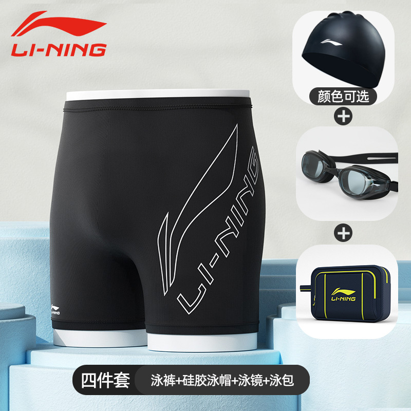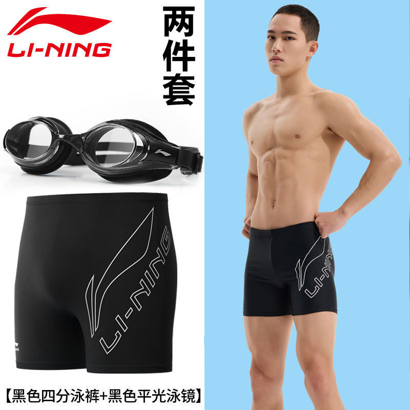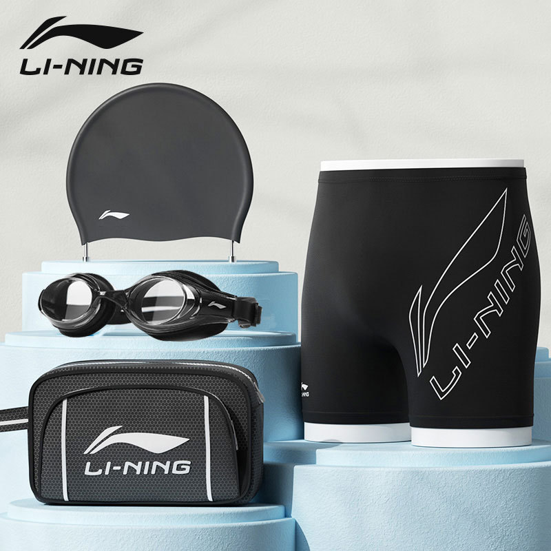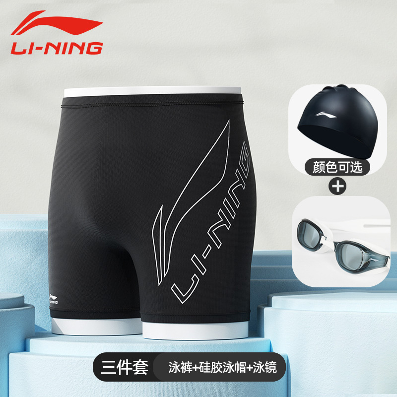 리 닝 수영 트렁크 새로운 속건성 당황 방지 수영 트렁크 수영 모자 수영 고글 3 피스 전문 훈련 남성용 수영복스토어 가기