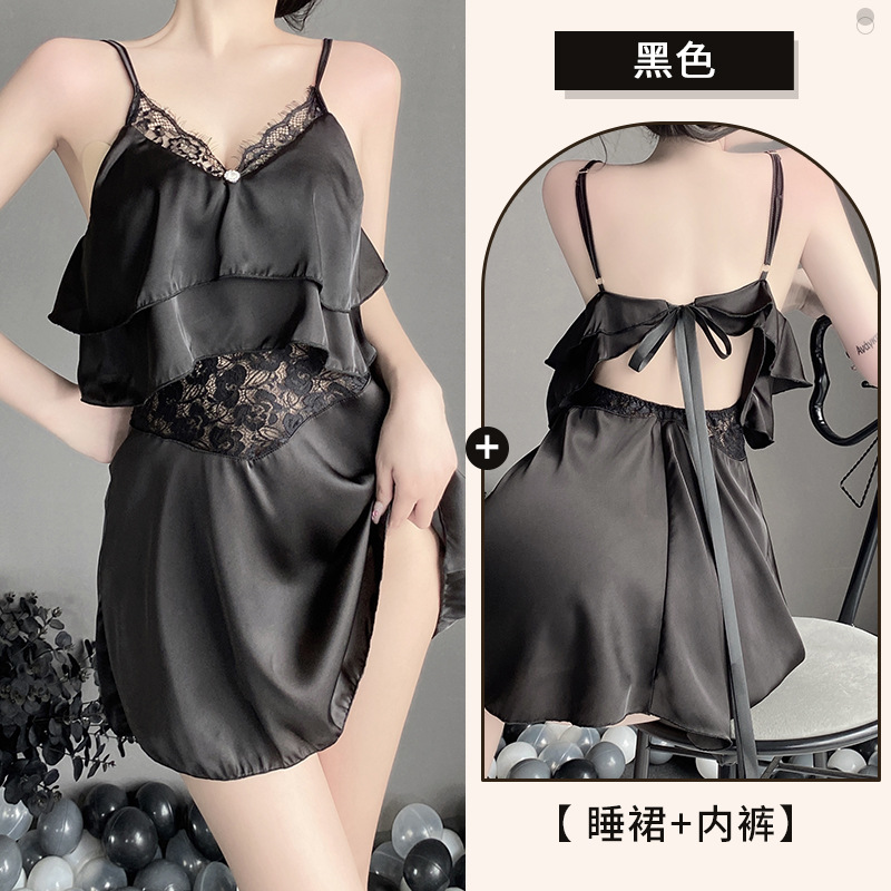 린 린팅 섹시 속옷 여자의 섹시 쉬폰 관점 유혹 달콤한 러플 슬링 잠옷 세트 2512스토어 가기
