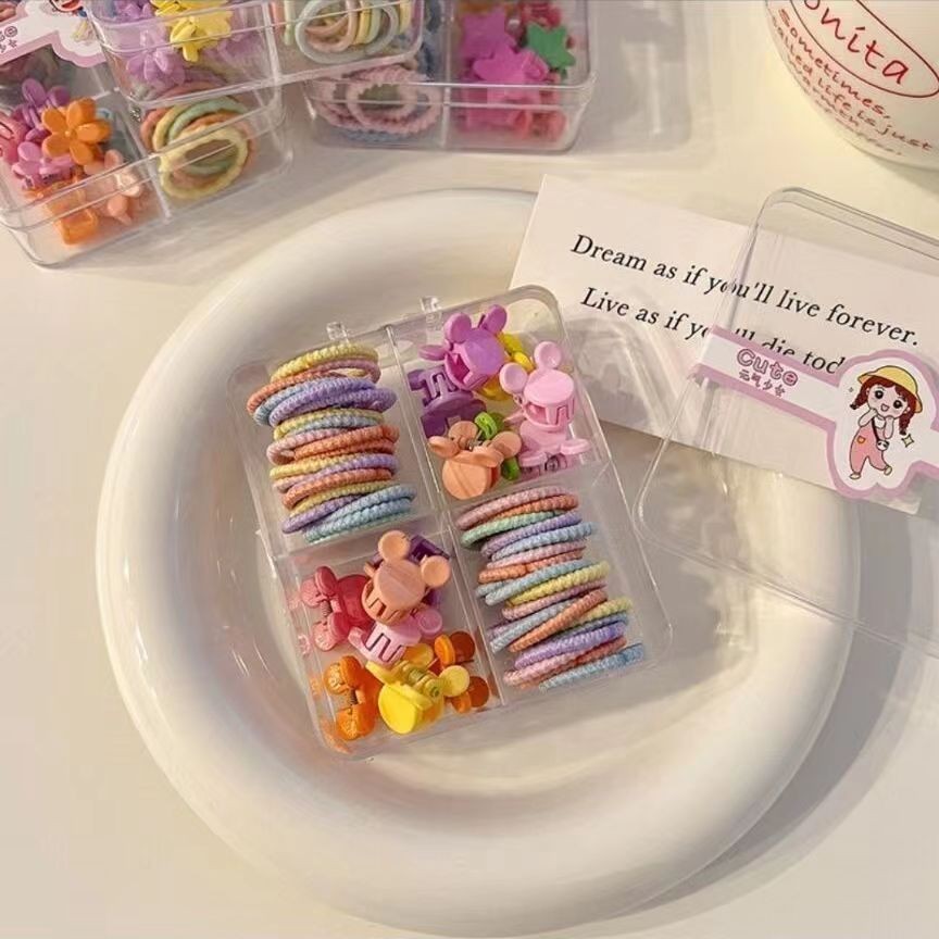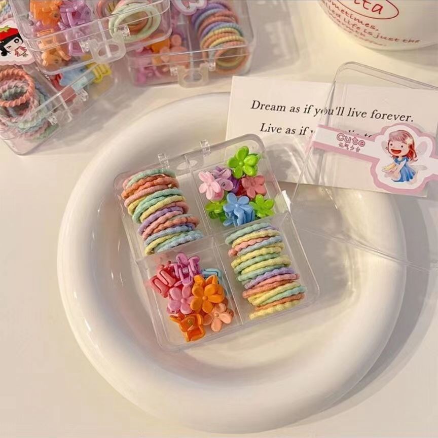 • 콩콩이 머리끈 + 다섯잎 꽃 미니 집게핀 4칸 세트