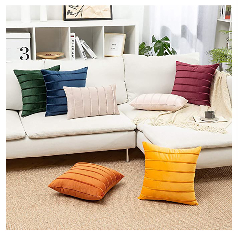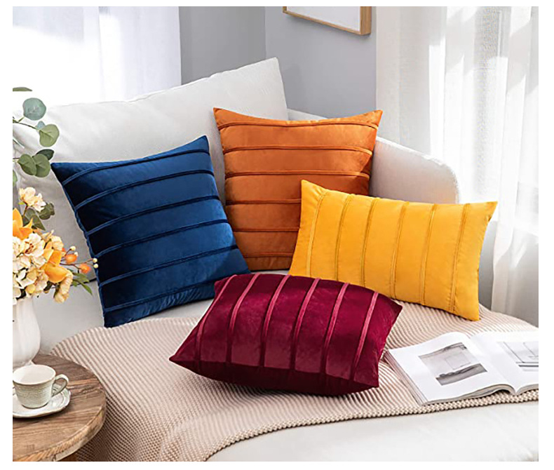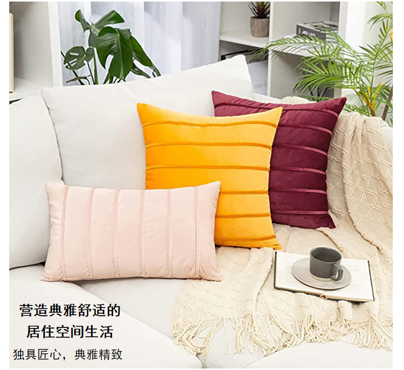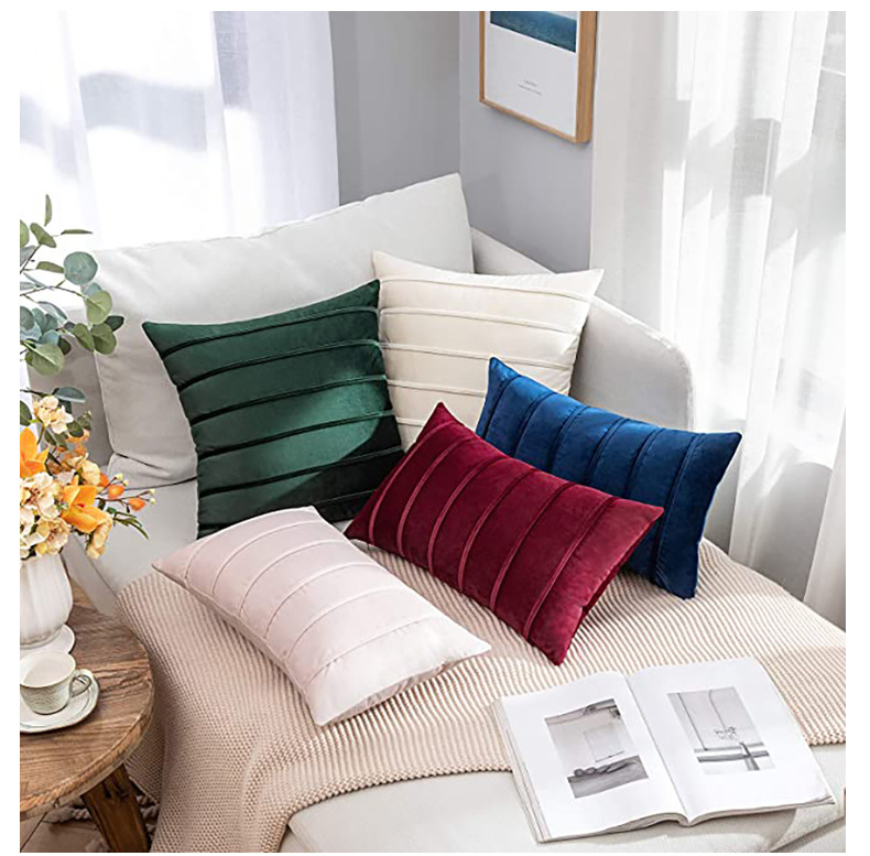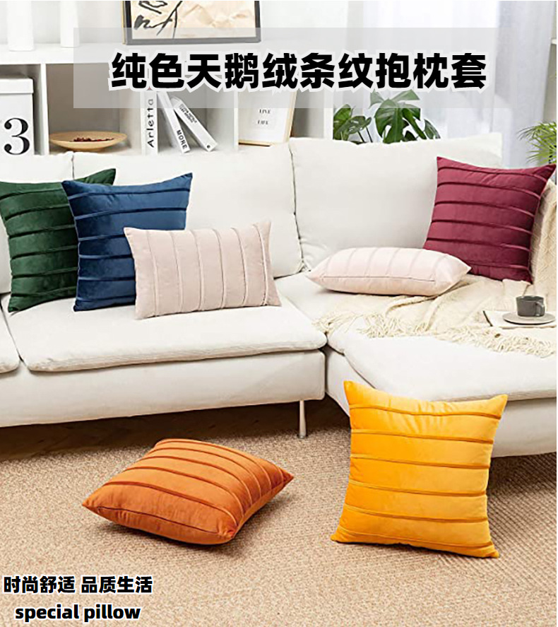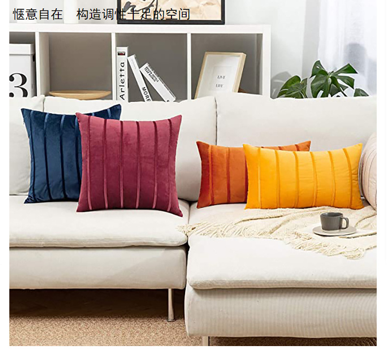 북유럽 홈 섬유 홈 장식 단색 벨벳 스트라이프 베개 사무실 허리 보호 쿠션 침대 옆 소파 베갯잇