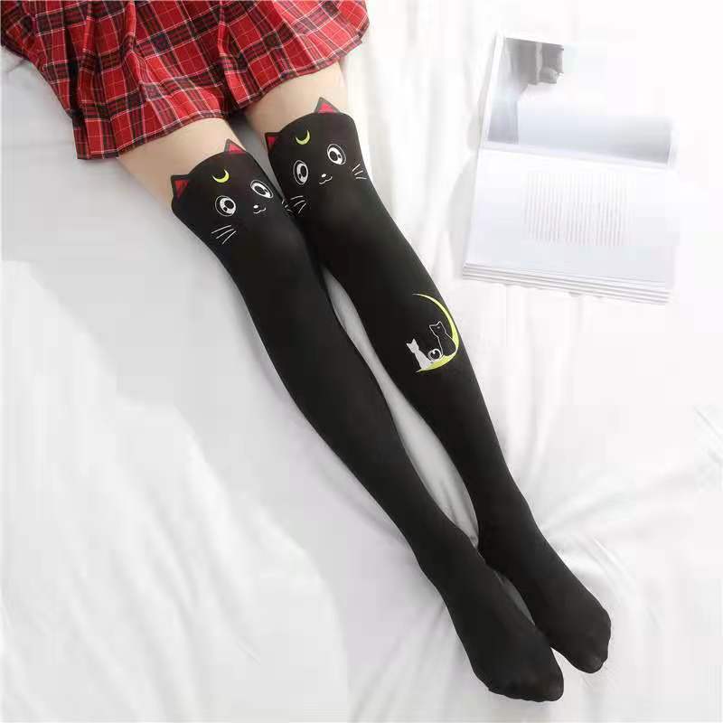 크로스 보더 로리타 스타킹 만화 달 고양이 팬티 스타킹 더블 컬러 스키니 다리 바지 고양이 JK 양말