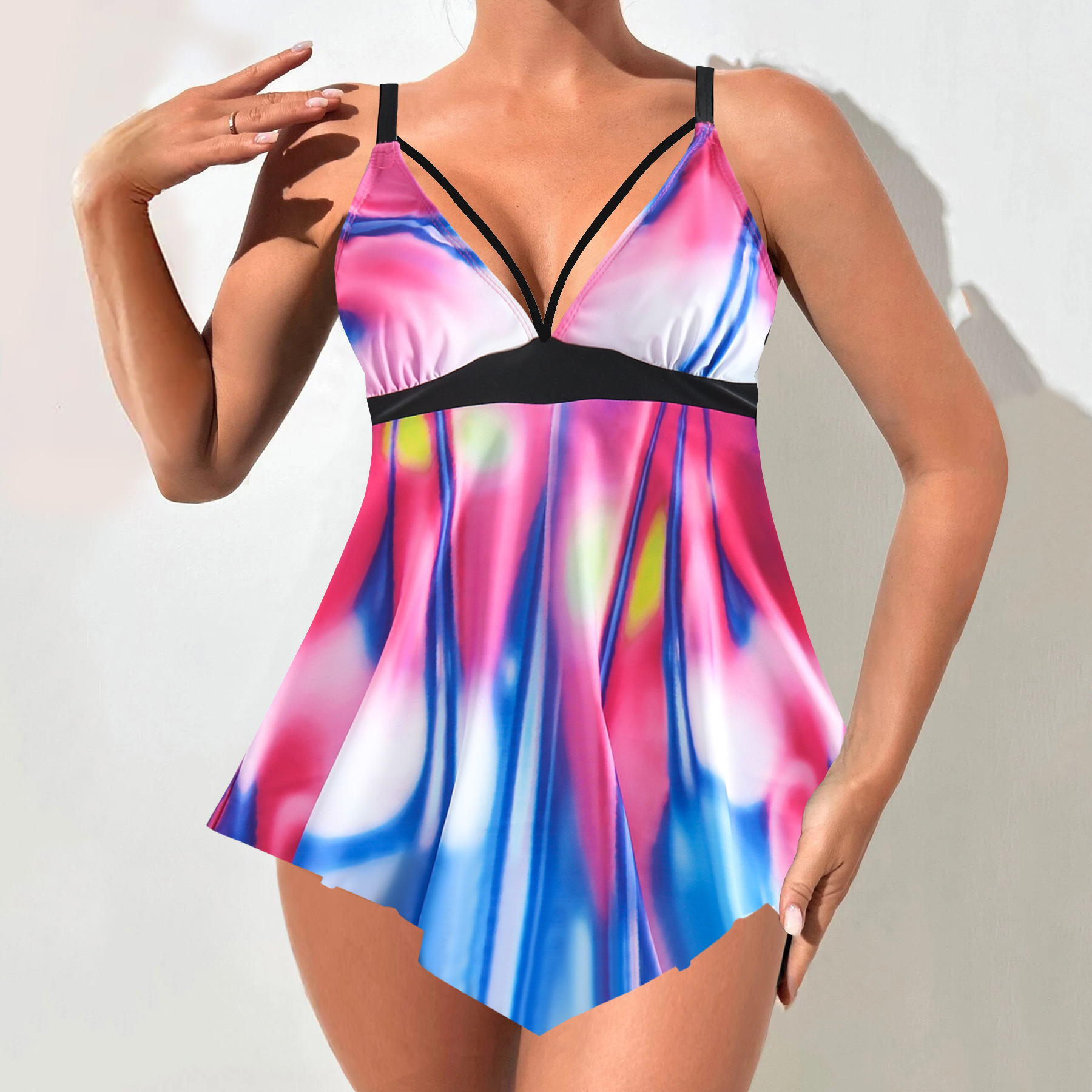 2022 크로스 보더 유럽과 미국의 새로운 AliExpress 비키니 아마존 고정 에디션 인쇄 분할 플러스 사이즈 수영복 여성