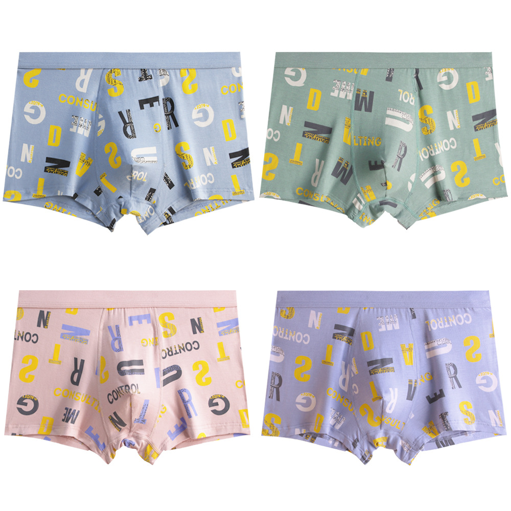Pingkangle 새로운 모달 남성 속옷 재봉 만화 인쇄 복서 남성용 편안한 네 모서리 공장 콘센트스토어 가기