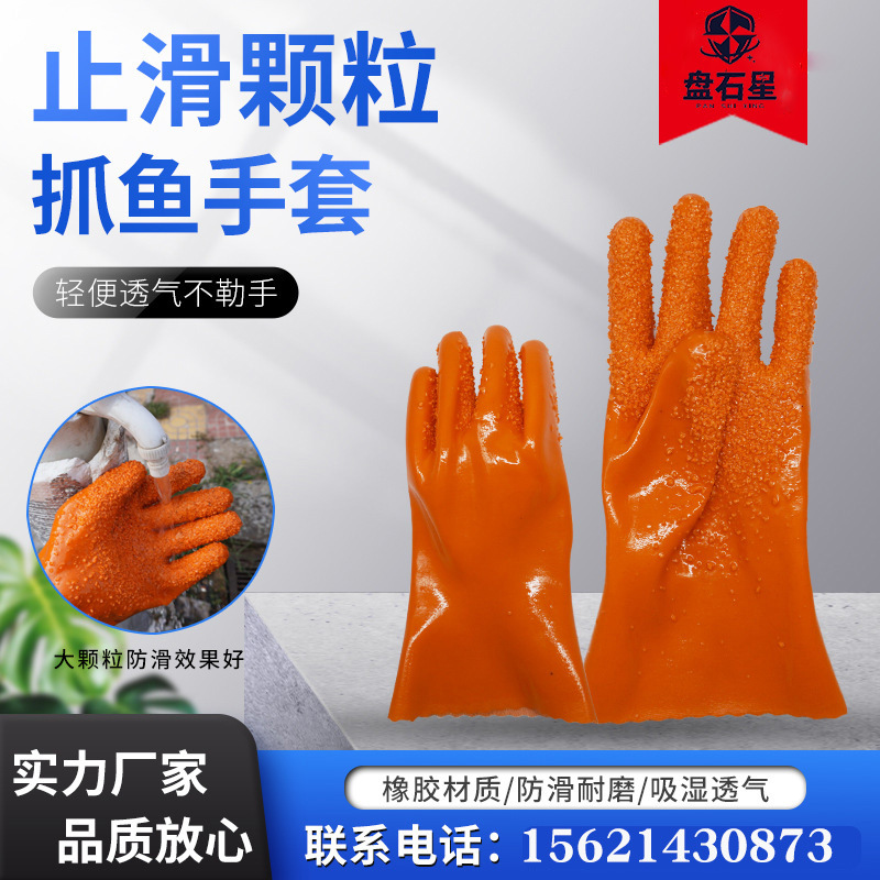 양식용 미끄럼 방지 입자 물고기 잡기 장갑 내유성 방수 고무 장갑 PVC 산 및 알칼리 방지 고무 담그기 노동 장갑스토어 가기