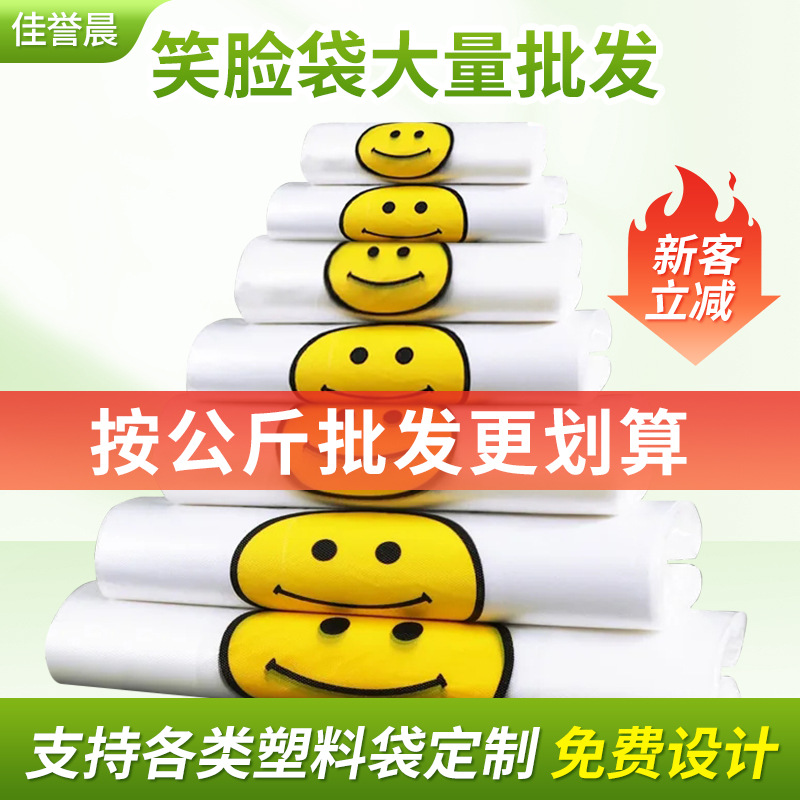 진 바이 투명 스마일 페이스 조끼 가방 푸드 슈퍼 쇼핑 포장지 포장 휴대용 비닐 편리한 가방 도매