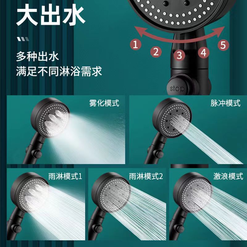 블랙 가압 샤워 노즐 세트 가정용 목욕 빗물 히터 유바 호스 샤워 헤드