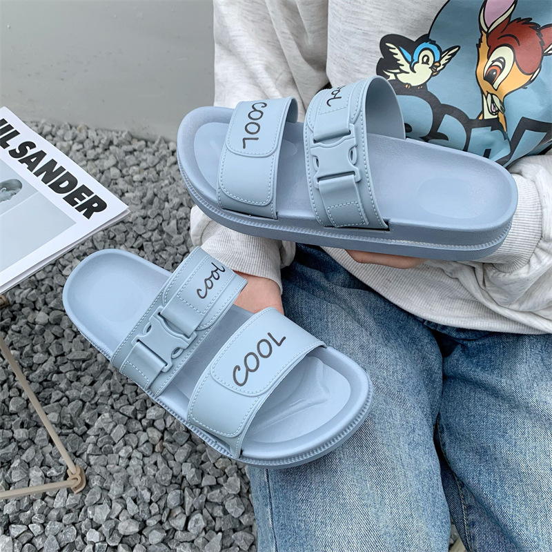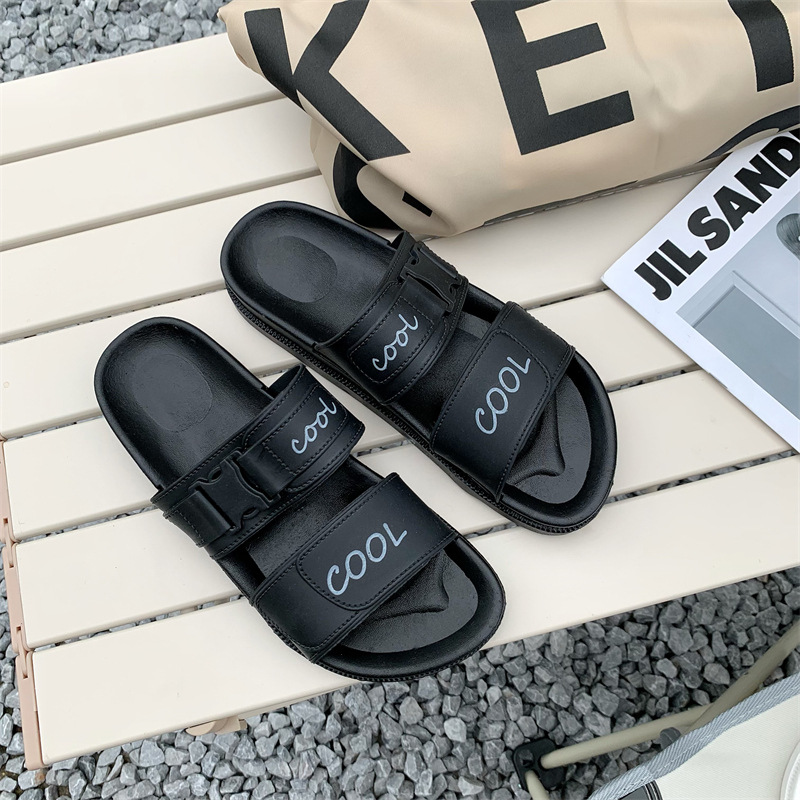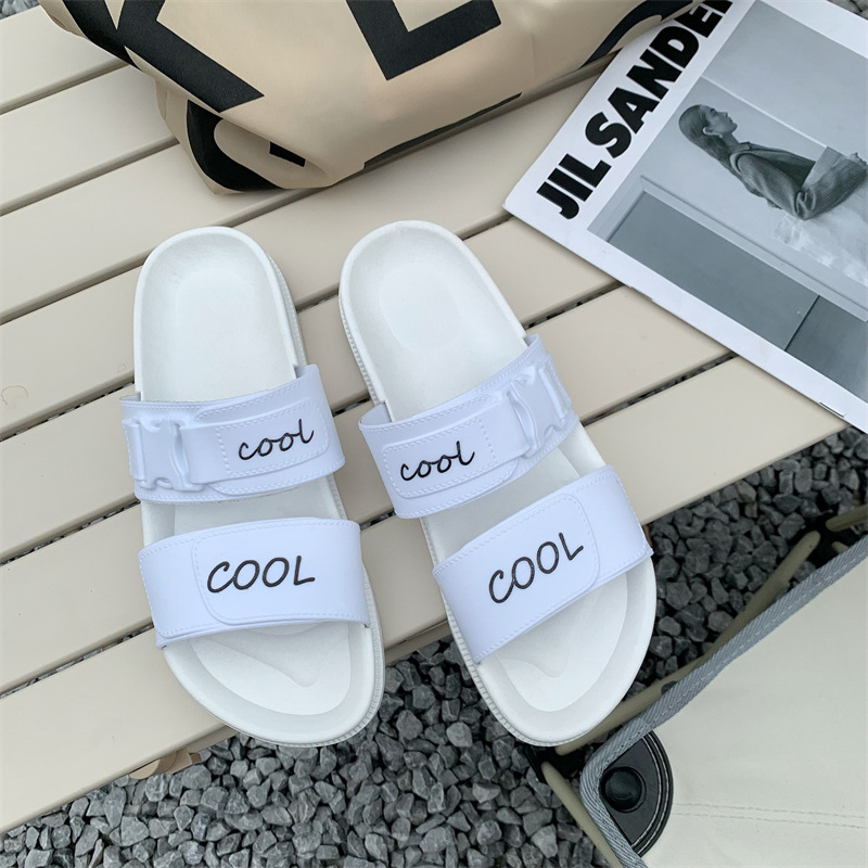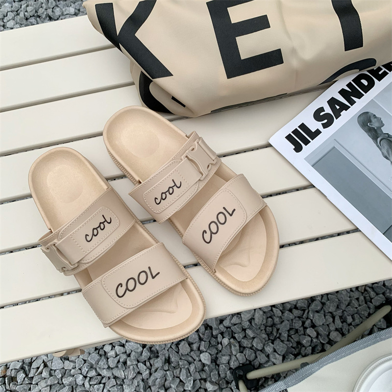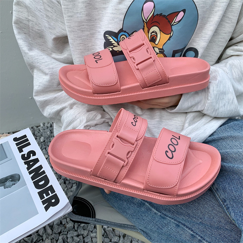 여성용 슬리퍼 2024 여름 플랫 바닥 편안한 한국 스타일 다용도 인터넷 연예인 두꺼운 밑창 패션 레터 샌들 여성 신발 도매 속이 빈 디자인스토어 가기