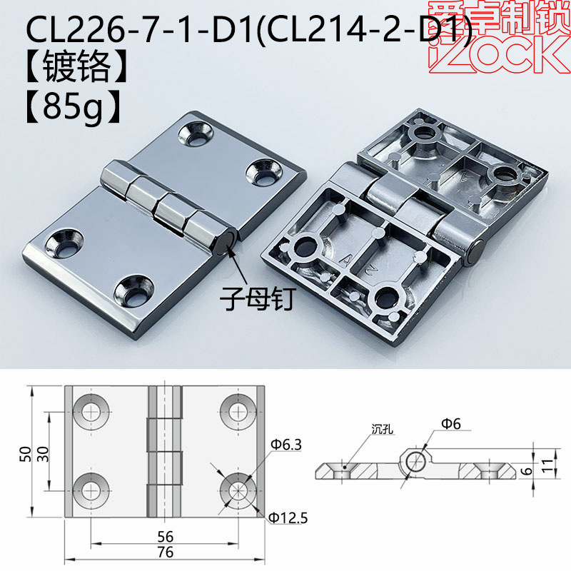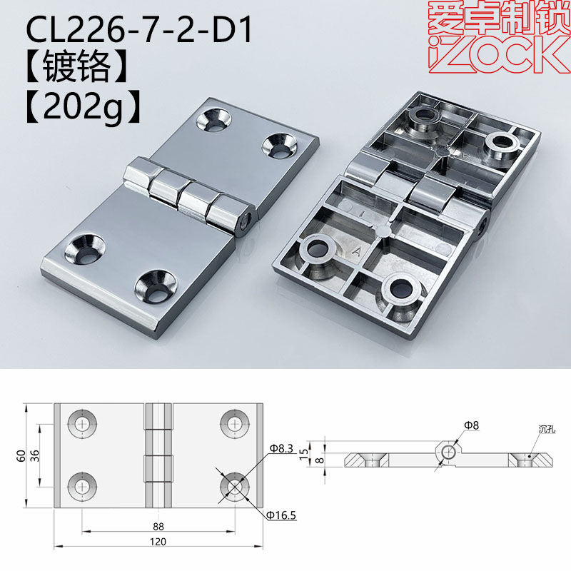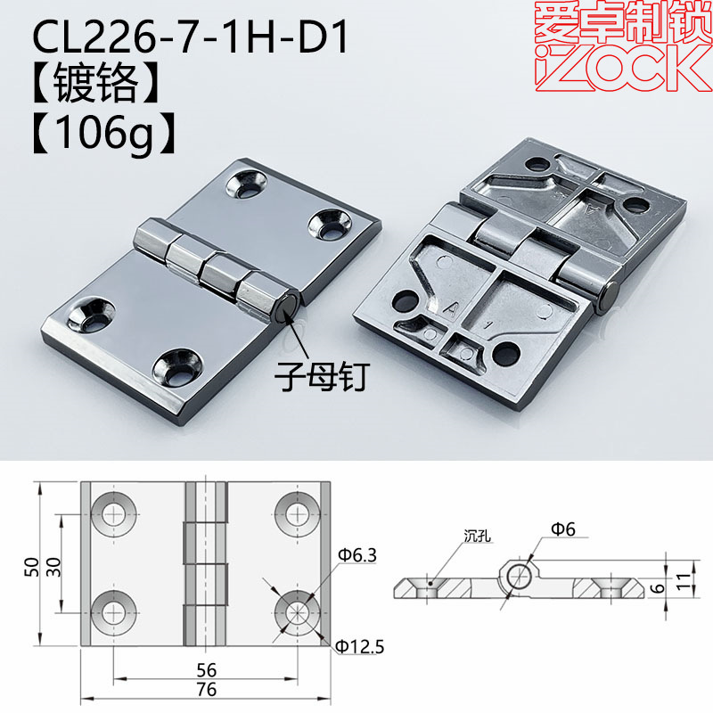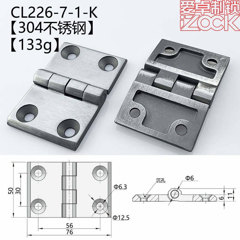 CL226-4A偏置型加厚锌合金铰链HFR11-50蝶形孔工业304不锈钢合页