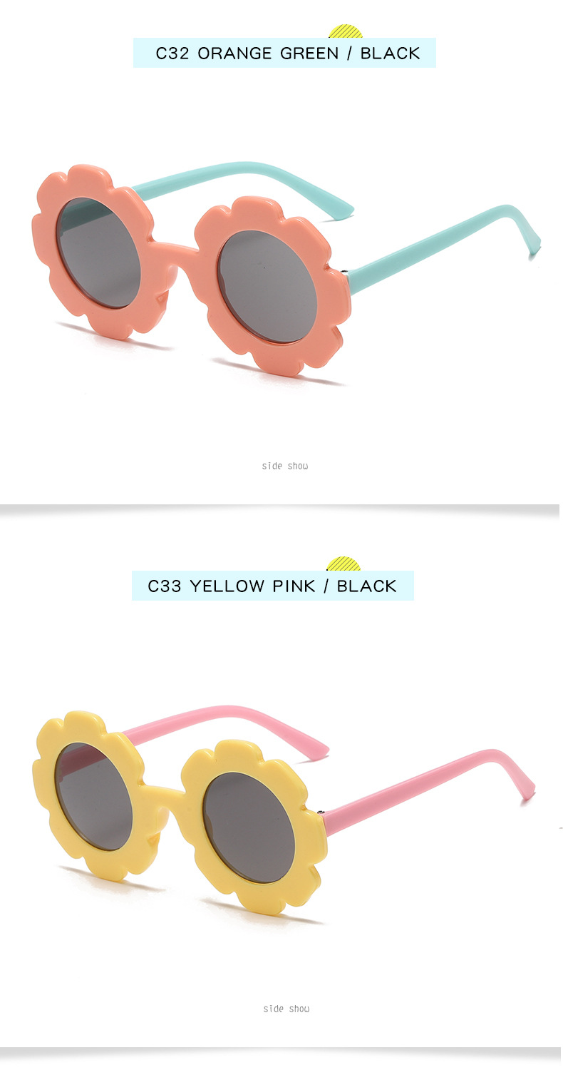 어린이 해바라기 라운드 프레임 패션 선글라스 유럽과 미국 아기 귀여운 남성과 여성 선 스크린 크로스 보더 선글라스 여행 및 휴가 용