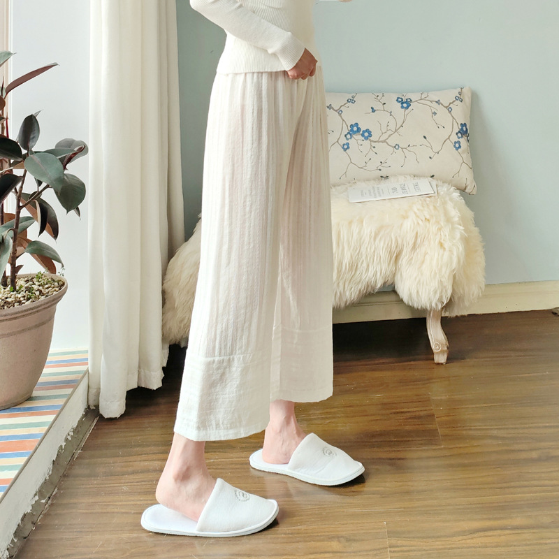 2022 봄 가을 면 8 점 와이드 레그 파자마 팬츠 느슨한 심플 얇은 일본식 홈 팬츠 여성용 에어컨 바지스토어 가기