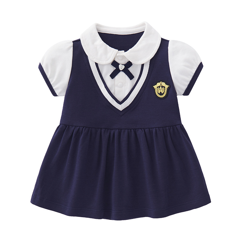 0-2세 여아 드레스, 여아 대학 스타일 폴로 칼라 스커트, A형 유아 여름옷, 중소형 아동용 A라인 스커트스토어 가기