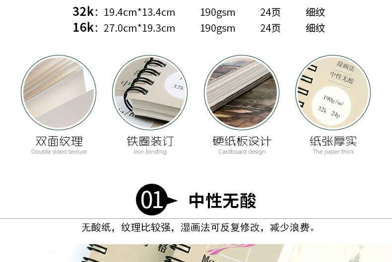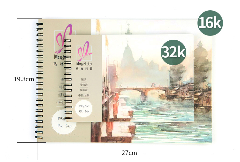 Margrit 수채화 16K/32K 수용성 컬러 리드 북 그림책 수채화 스케치 용지 24 매/책