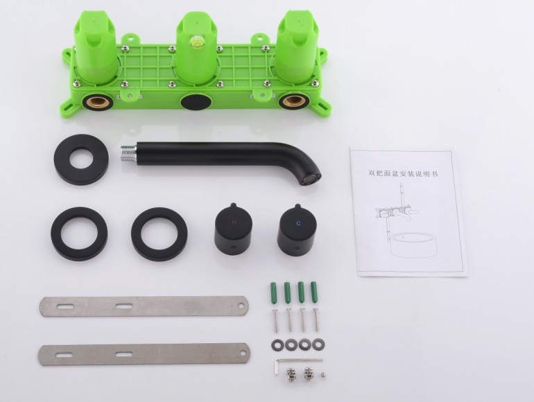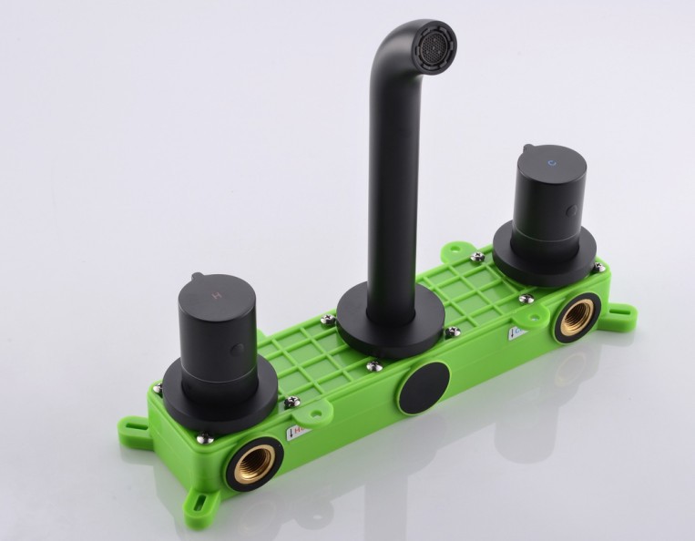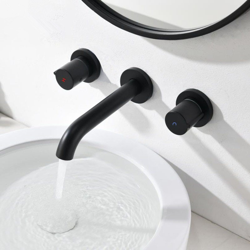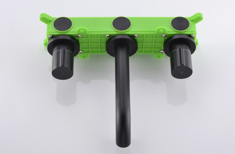 Muku 올-구리 벽 3 홀 수도꼭지 핫 및 콜드 임베디드 숨겨진 얼굴 분지 수도꼭지 블랙