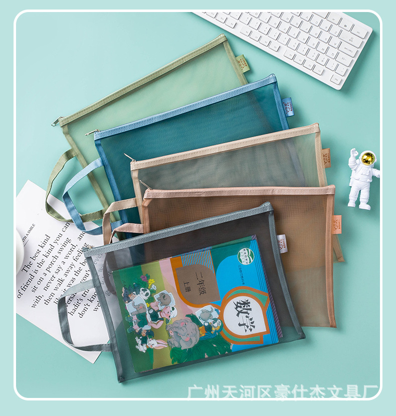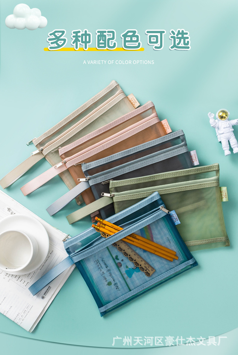 Morandi A4 휴대용 2 층 문서 가방 A5 투명 메쉬 테스트 용지 데이터 주제 가방 A6 연필 가방 로고 인쇄 가능스토어 가기