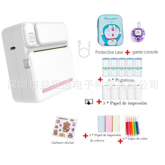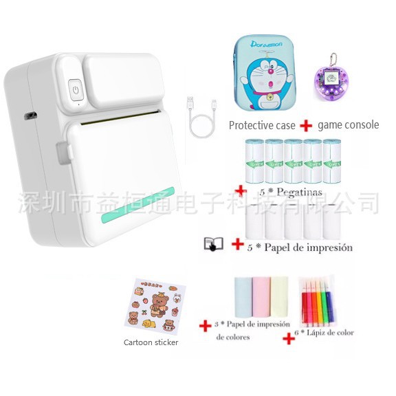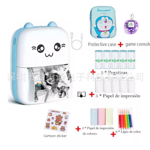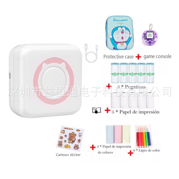 • C9 영어 흰색 파란색 + 감열지 5롤 + 자체 접착 롤 5개 + 색종이 3롤 + 수채화 펜 6개 + 만화 스티커 + 게임 콘솔 + 보호 케이스