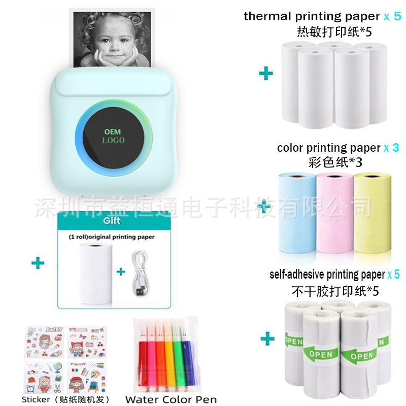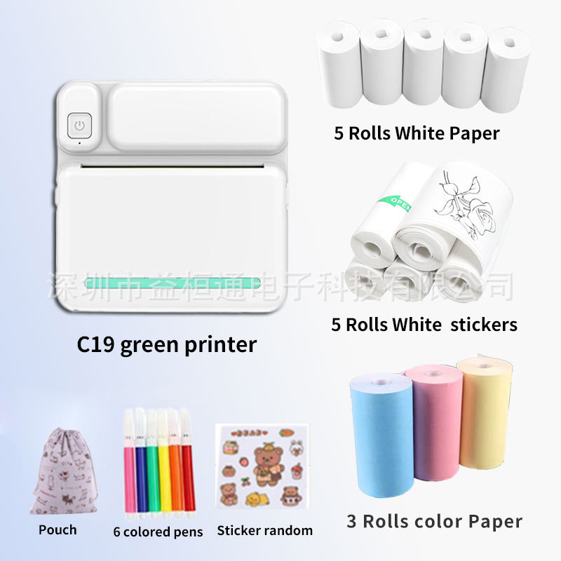• C19 영어 흰색 및 녹색 + 감열지 5롤 + 스티커 5롤 + 색종이 3롤 + 수채펜 6개 + 만화 스티커 + 게임 콘솔 + 보호 케이스