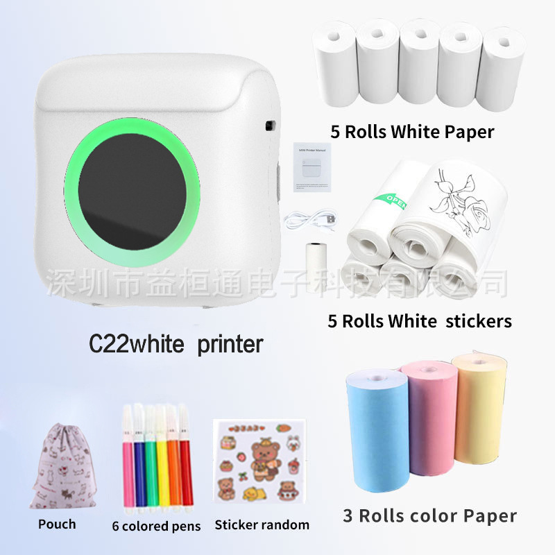 • C22 영어 흰색 + 감열지 5롤 + 스티커 5롤 + 색종이 3롤 + 수채펜 6개 + 만화 스티커
