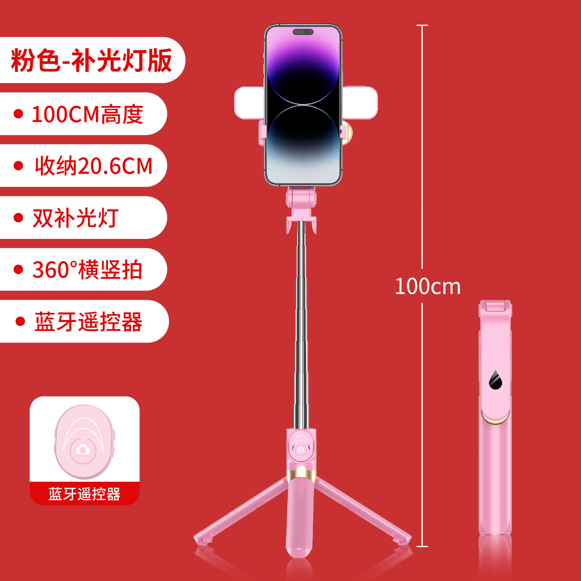 • XT06SP 더블 필 라이트 뷰티 램프 확장 130cm + 걸리 핑크
