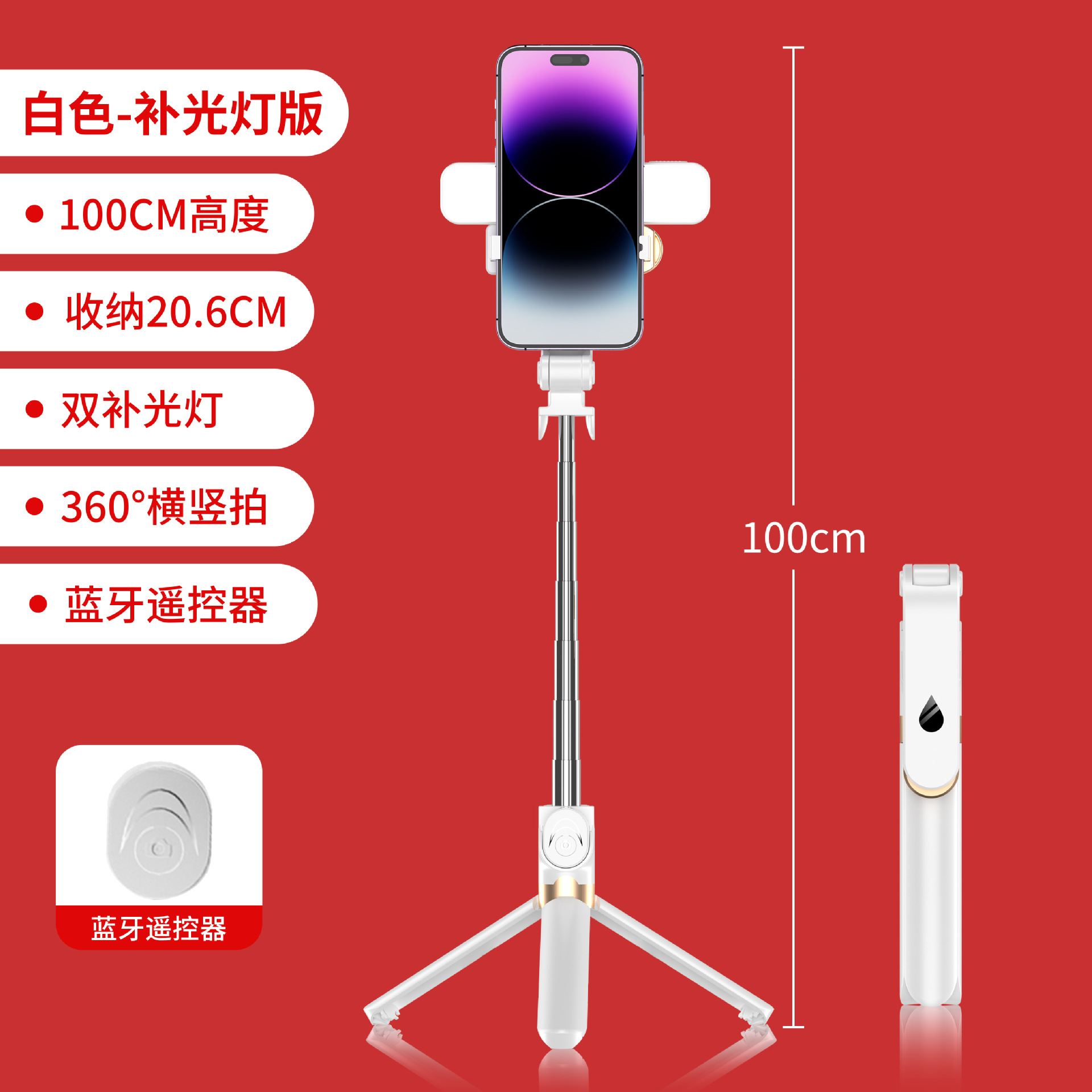 XT06 휴대 전화 블루투스 셀카 스틱 필 라이트 범용 라이브 방송 브래킷 삼각대 강화된 케이블 스태빌라이저 도매
