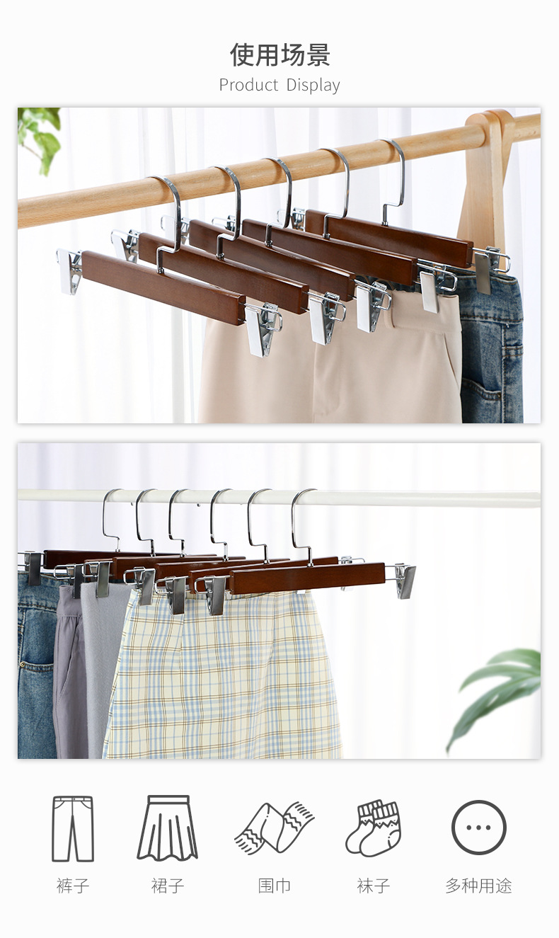 단단한 나무 바지 랙 바지 클립 강한 가정용 원활한 교수형 바지 바지 걸이 치마 의류 매장 도매 가격