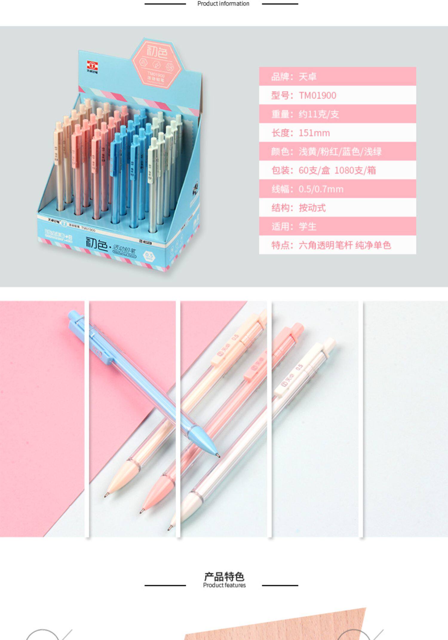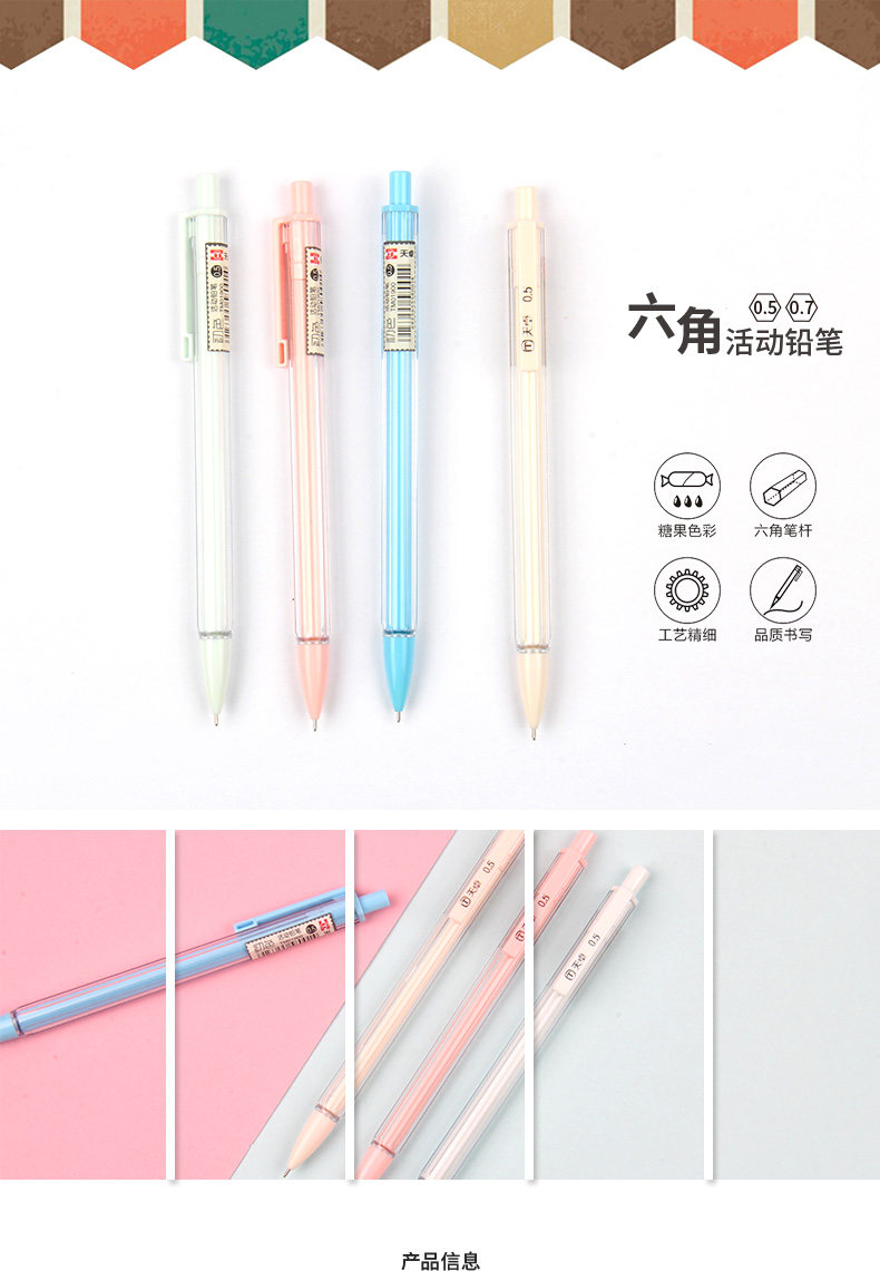 Tianzhuo TM01900 자동 연필 0.5mm 샤프펜슬 0.7mm 학생용 육각형 투명 자동펜 리필스토어 가기