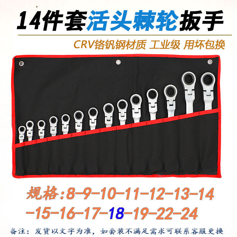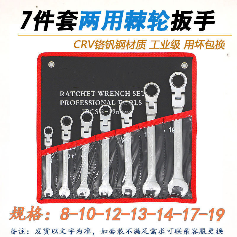 两用扳手工具12件套装棘轮扳手组套挂袋全抛光CRV72齿可摇头 现货