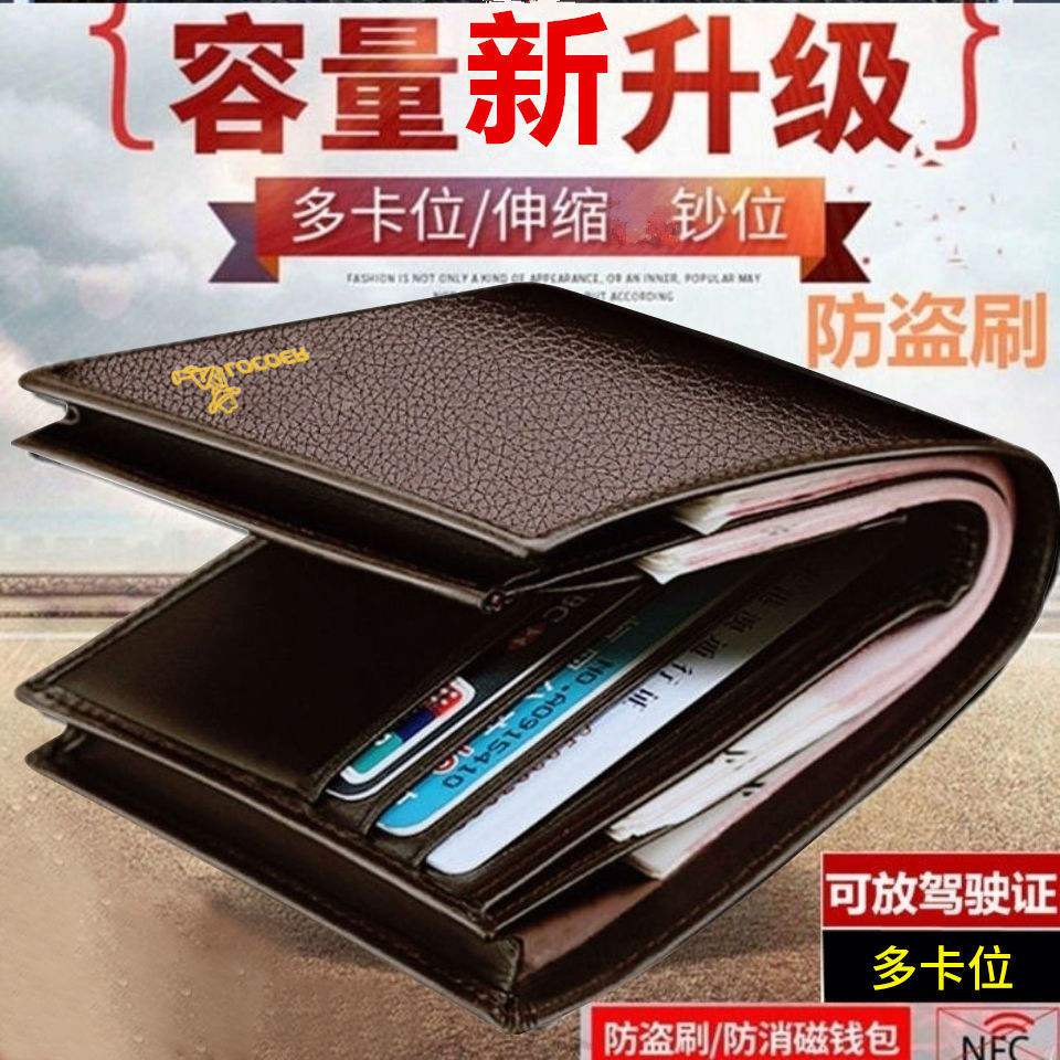 소가죽 질감 자기 방지 지갑 남성용 정품 가죽 정품 간단한 남성 지갑 수평 멀티 카드 티켓 홀더 유행스토어 가기