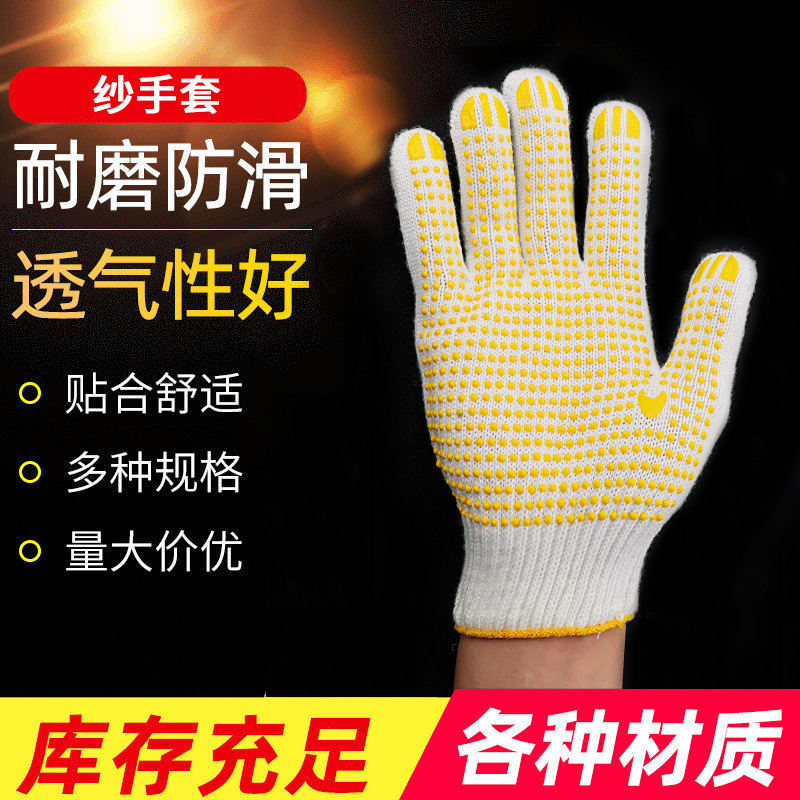 노동 보호 장갑 실 거즈 장갑 두꺼운 내마모성 통기성 남성용 및 여성용 미끄럼 방지 비즈 면사 접착제 장갑 배치스토어 가기