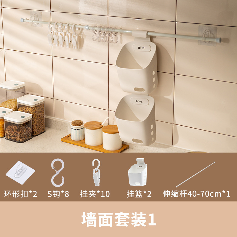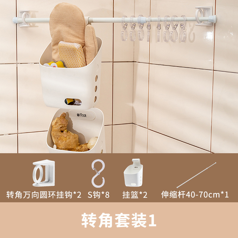 교수형 무료 주방 교수형 바구니 구멍 벽걸이 생강 마늘 보관 랙 텔레스코픽로드 조정 가능한 풀 타월 교수형로드 후크스토어 가기