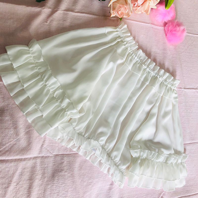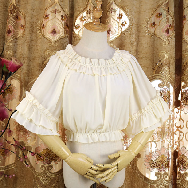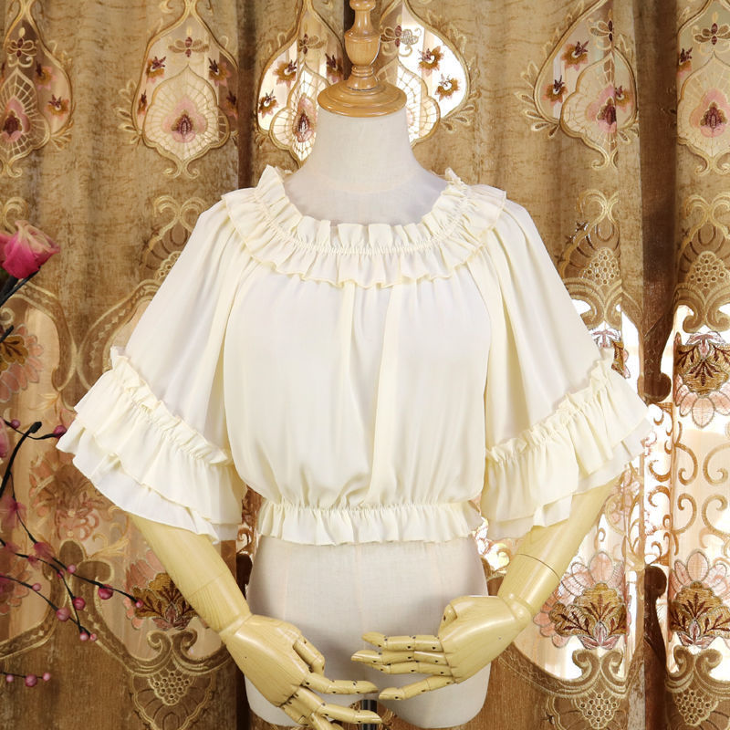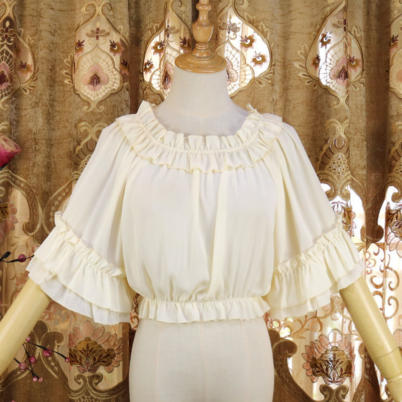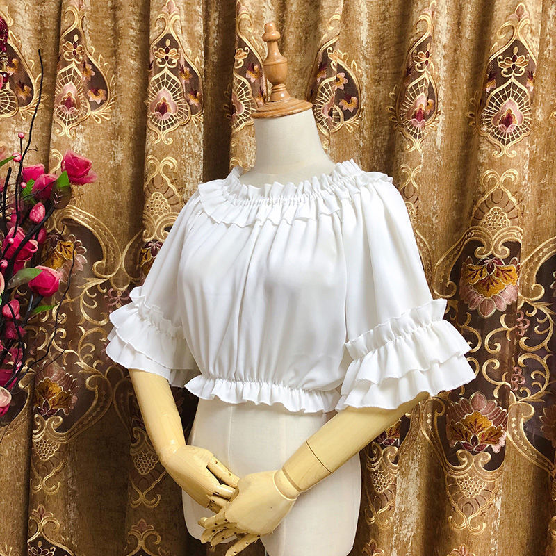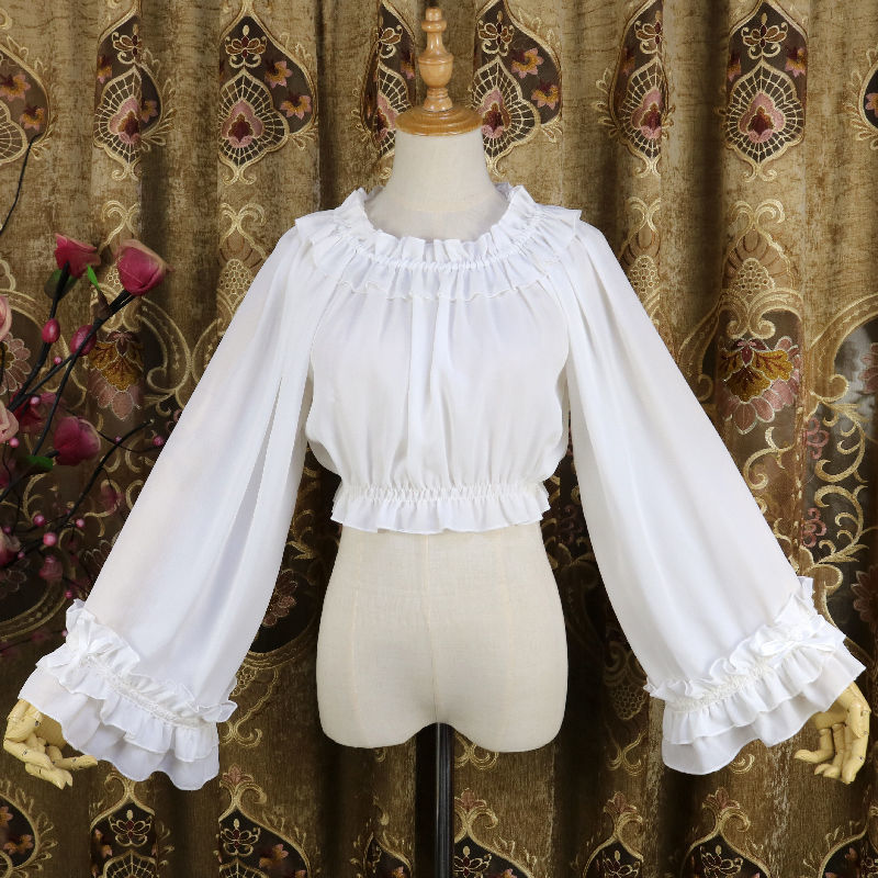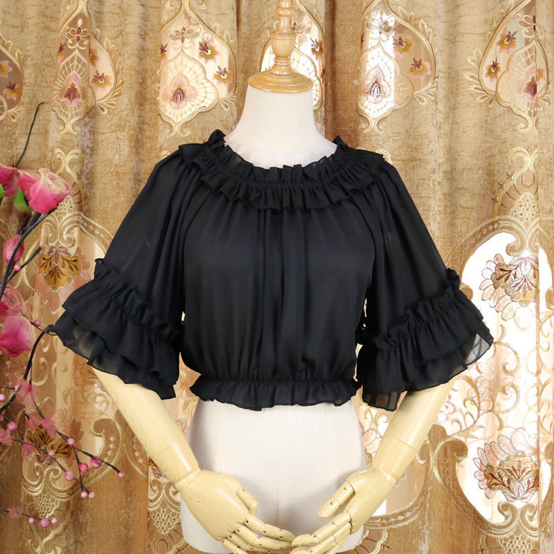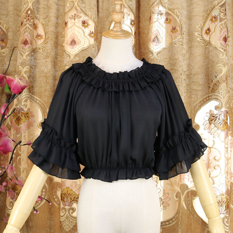 원래 로리타 원피스 프릴 쉬폰 내부 혼 슬리브 느슨한 라운드 넥 풀오버 베이스 셔츠