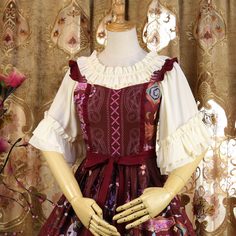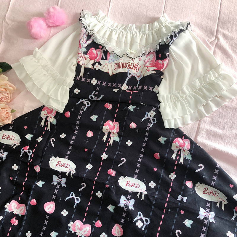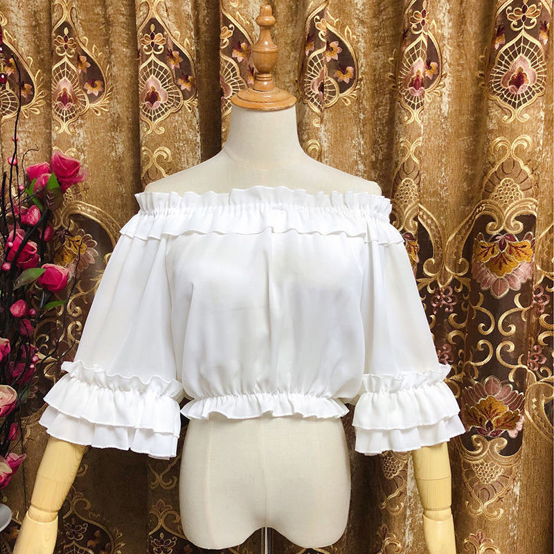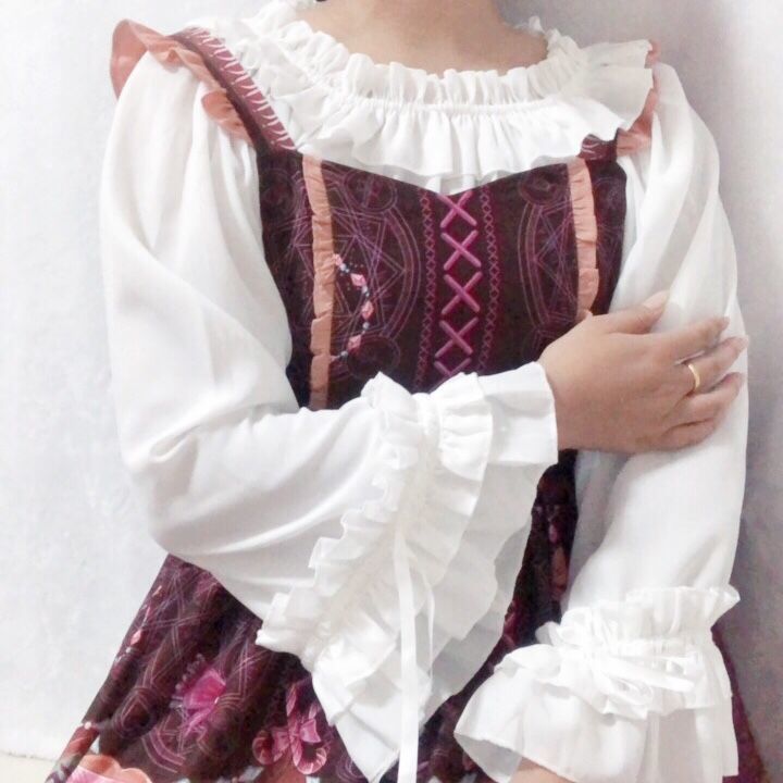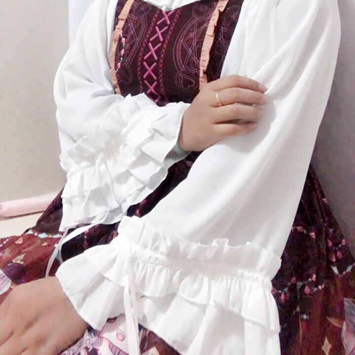 원래 로리타 원피스 프릴 쉬폰 내부 혼 슬리브 느슨한 라운드 넥 풀오버 베이스 셔츠스토어 가기