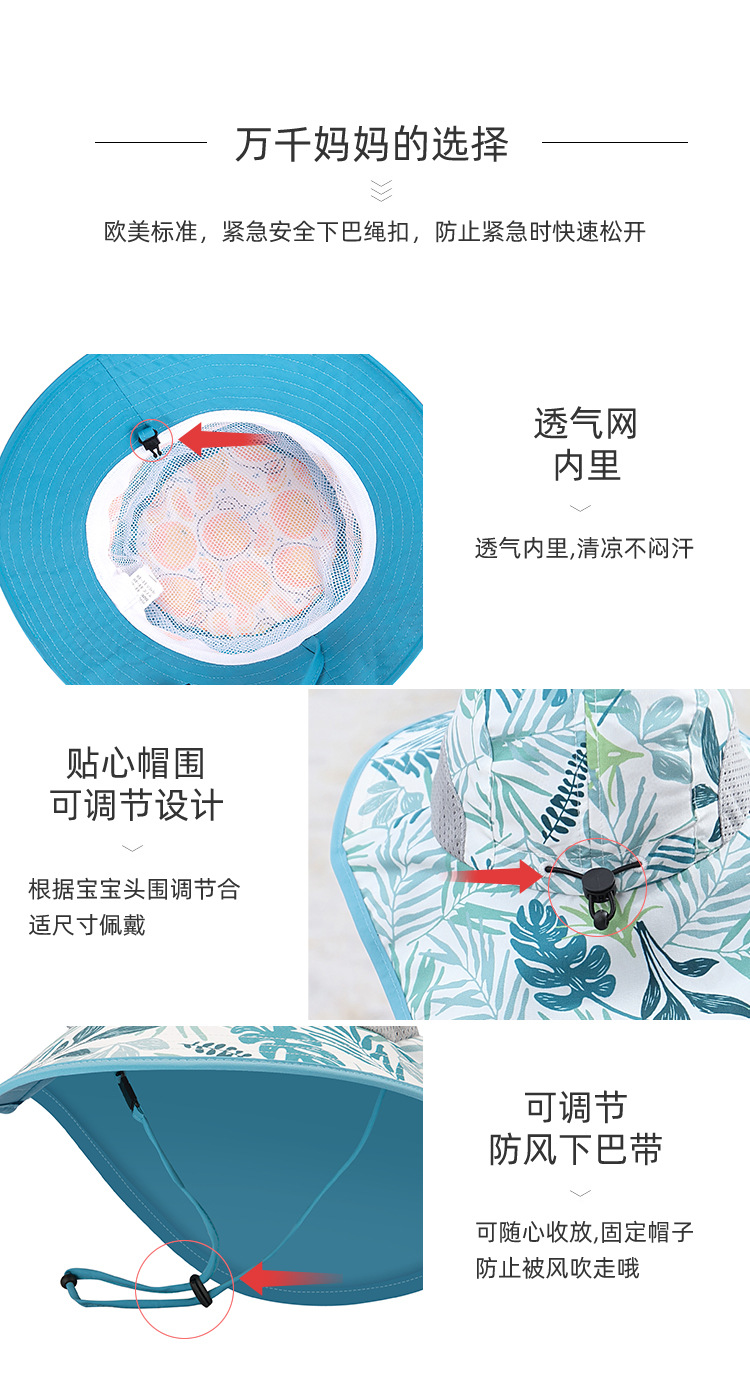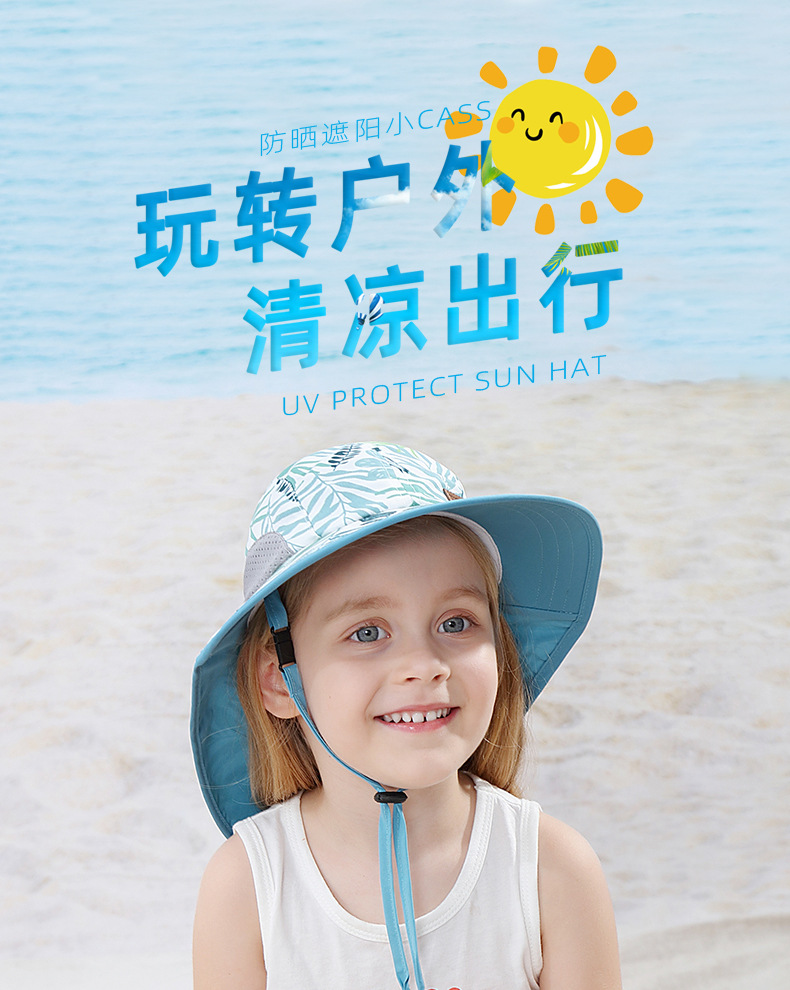 대외 무역 Ins 바람 큰 잎 어부 모자 어린이 여름 야외 휴일 해변 모자 큰 브림 목도리 햇살