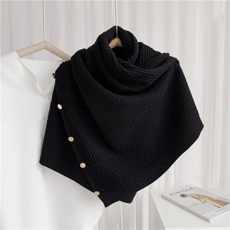 카운터 품질 소프트 왁스 골드 버클 망토 작은 숄 캐시미어 스카프 여성의 외부 따뜻한 니트 울 에어컨 스카프