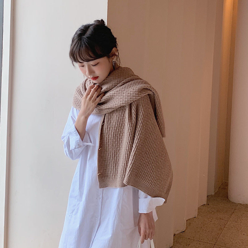 카운터 품질 소프트 왁스 골드 버클 망토 작은 숄 캐시미어 스카프 여성의 외부 따뜻한 니트 울 에어컨 스카프스토어 가기
